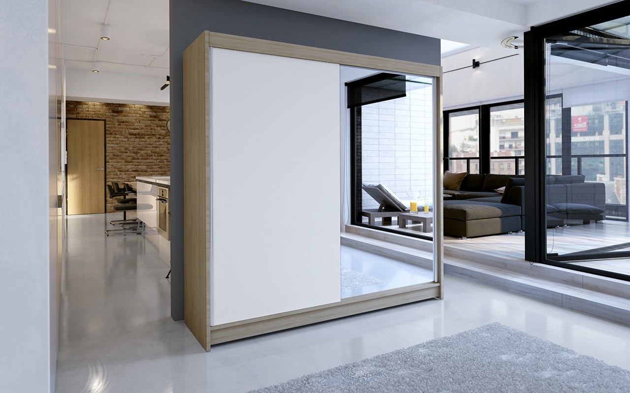 VIKI 180 Sonoma/Balta ADRK stumdoma spinta su veidrodžiu