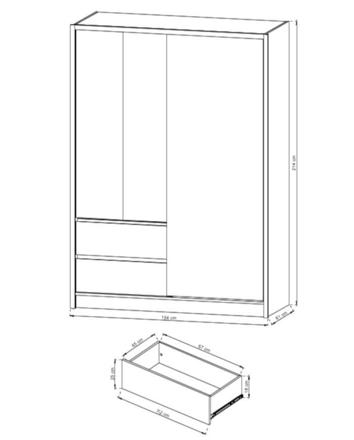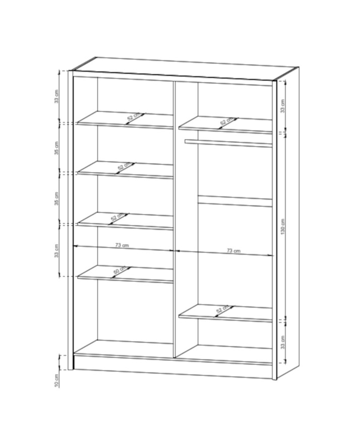 Be the first to review “Sara spinta, dviejų durų, 154 cm, stumdomos, lentynos, pakabos karnizas, stalčiai, veidrodis, balta”