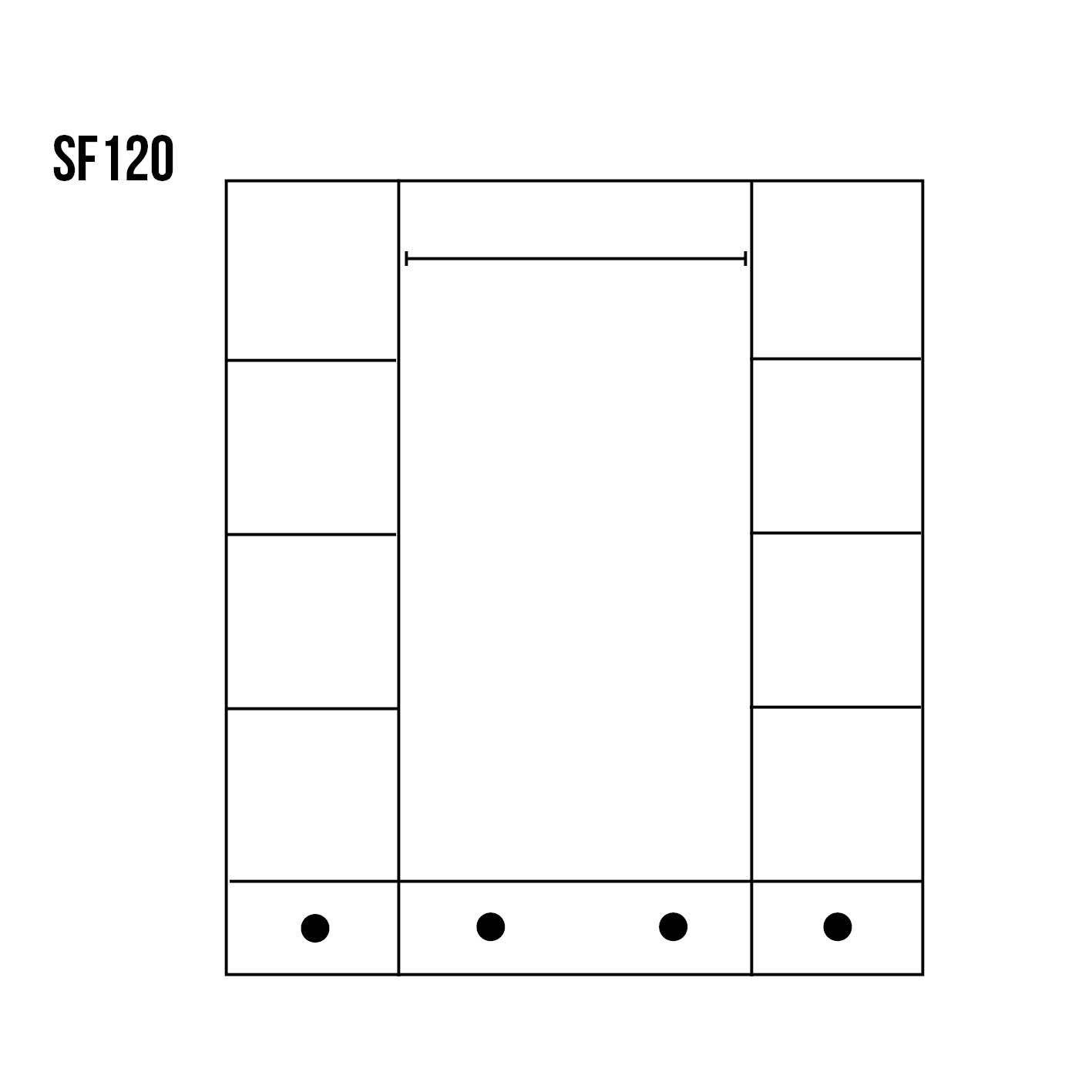 The SF120 is a pine wardrobe that will hold your entire wardrobe. Spacious and modern, it will be both decorative and functional. The wardrobe is divided into two sections. Its sides feature symmetrically arranged shelves, and the middle section features a hanging rail. Three spacious drawers located in the lower section are perfect for storing underwear or small knick-knacks. The large, mirrored fronts not only look beautiful but also visually enlarge the space. The glass panels perfectly reflect light, making the room brighter.