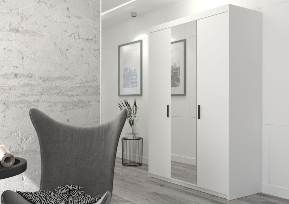 Trijų durų spinta su veidrodžiu Elena 3D balta matinė