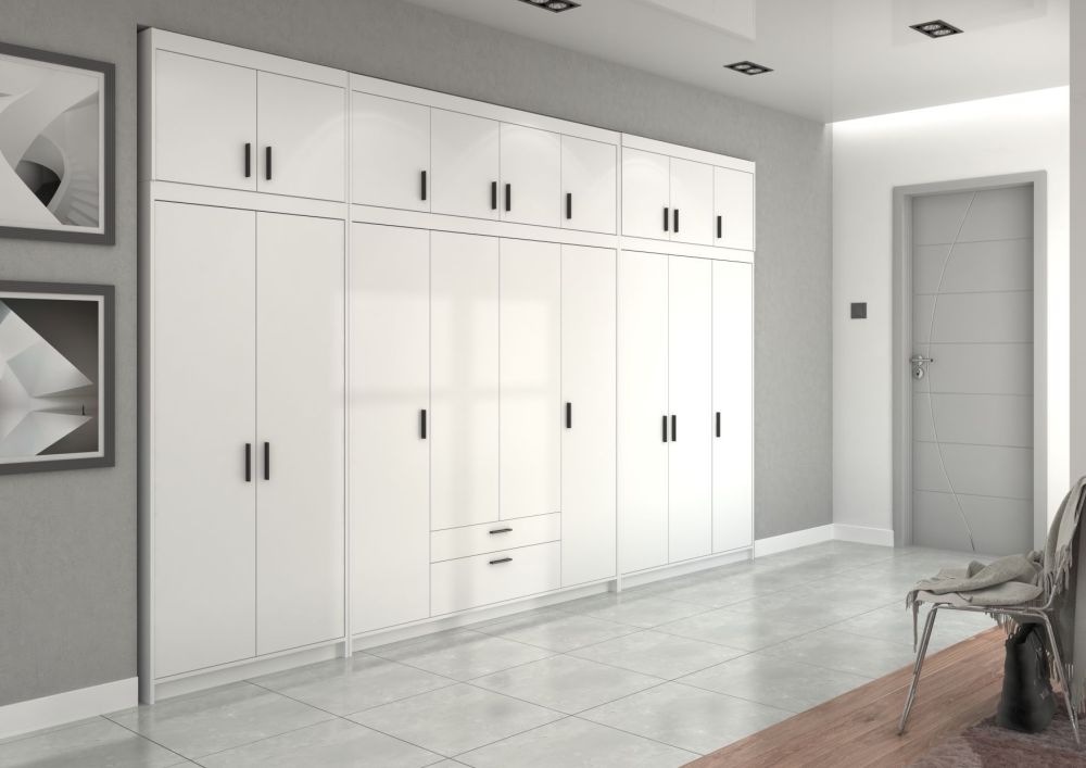 You can order the 55 cm high extension shown in the photo and a white drawer unit for this wardrobe – please ask for options.