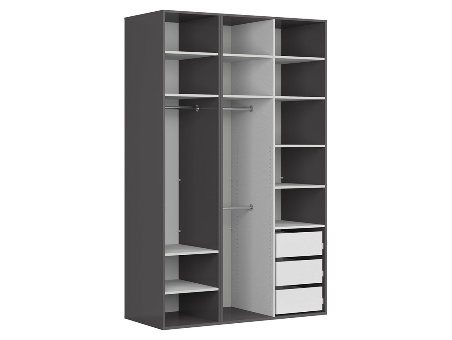 Product code F57-SZAFA_ZESTAW_113-GF/SZ Symbol ZM EAN Width 150 cm Depth 66 cm Height 240 cm Collection Flex Color graphite/gray Shade gray Style modern Material laminate Number of doors 3-door Number of drawers 3-drawers Handle with handles Lighting optional Manufacturer Black Red White Type of furniture Wardrobes VAT tax 23% EAN 5906123847490