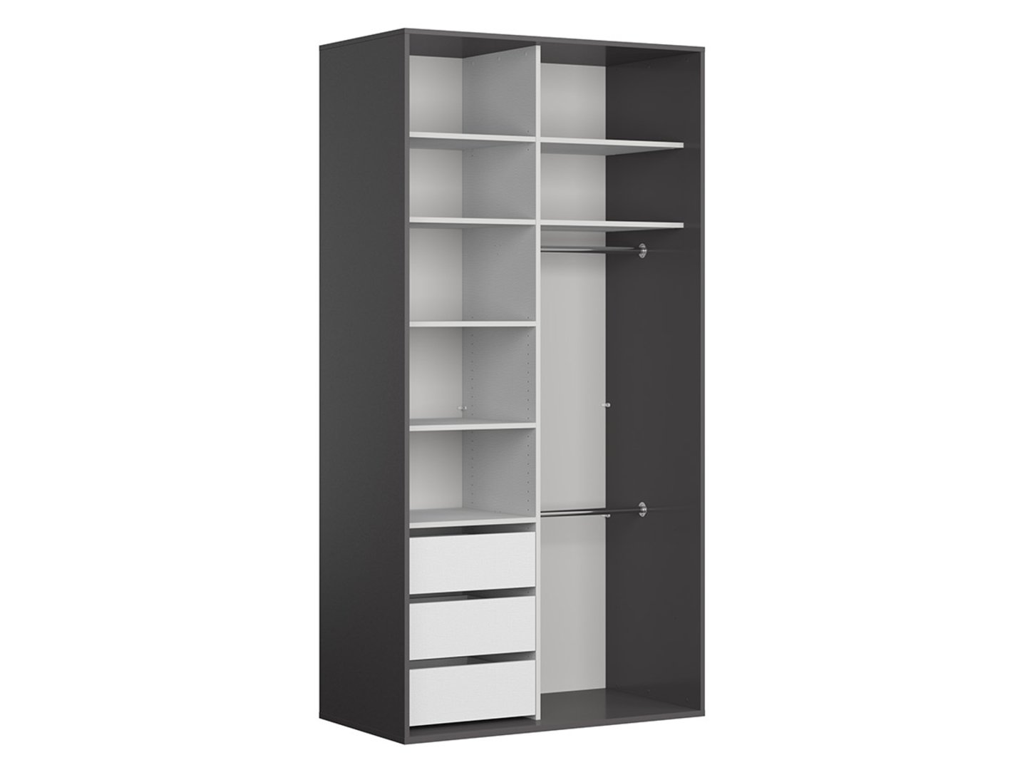 Product code F57-SZAFA_ZESTAW_128-GF/CAP Symbol ZM EAN Width 120 cm Depth 66 cm Height 240 cm Collection Flex Color graphite/glossy black Shade black Style modern Material laminate Number of doors 2-door Number of drawers 3-drawers Handle without handles Lighting optional Manufacturer Black Red White Type of furniture Wardrobes VAT 23% EAN 5906123847674