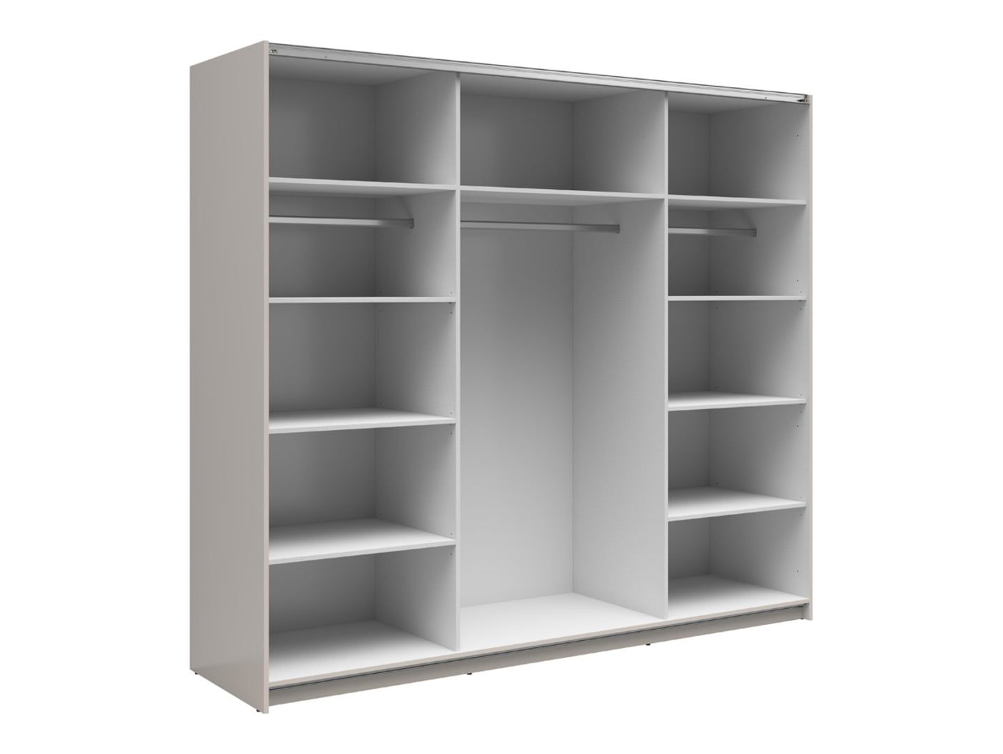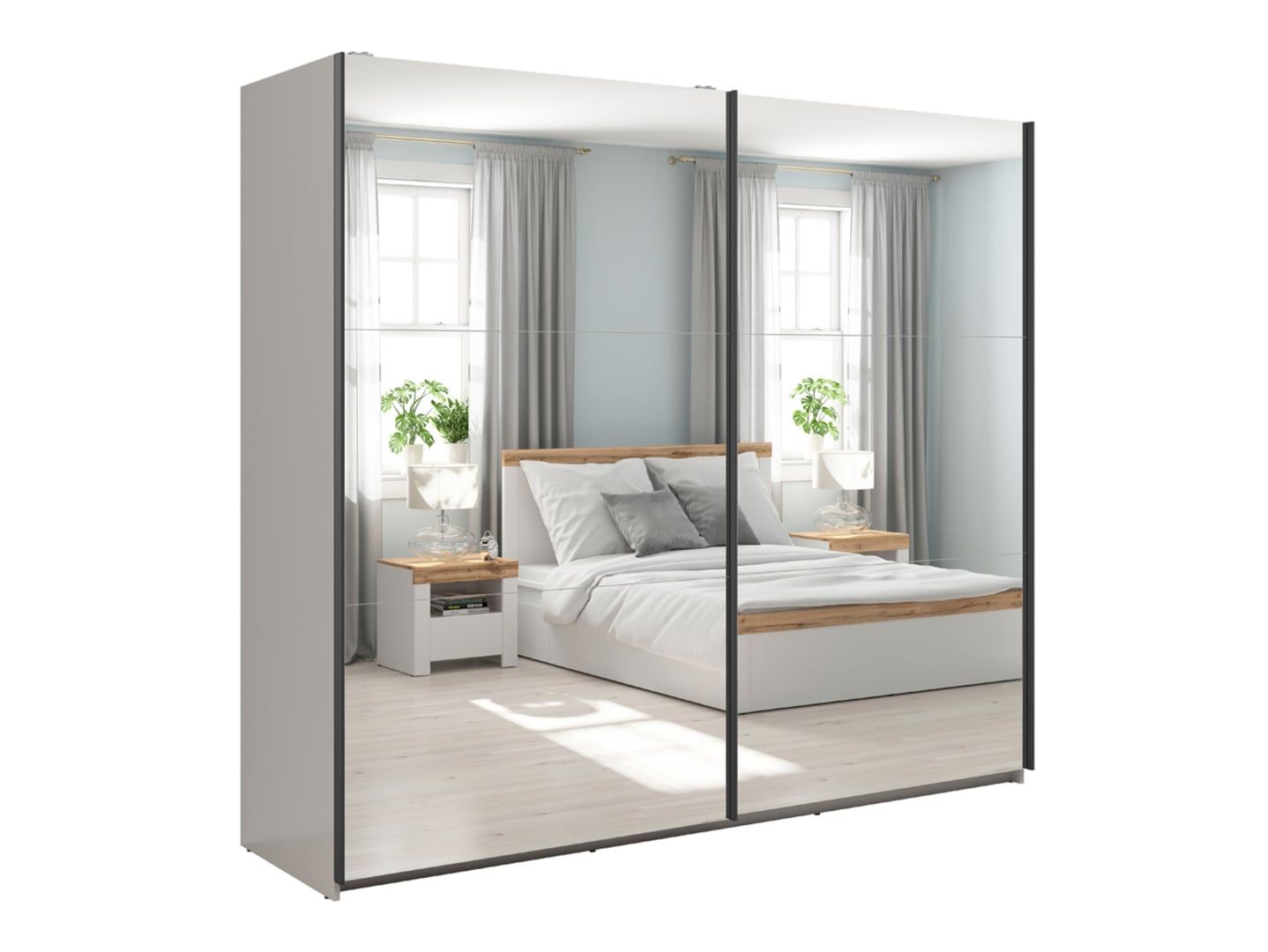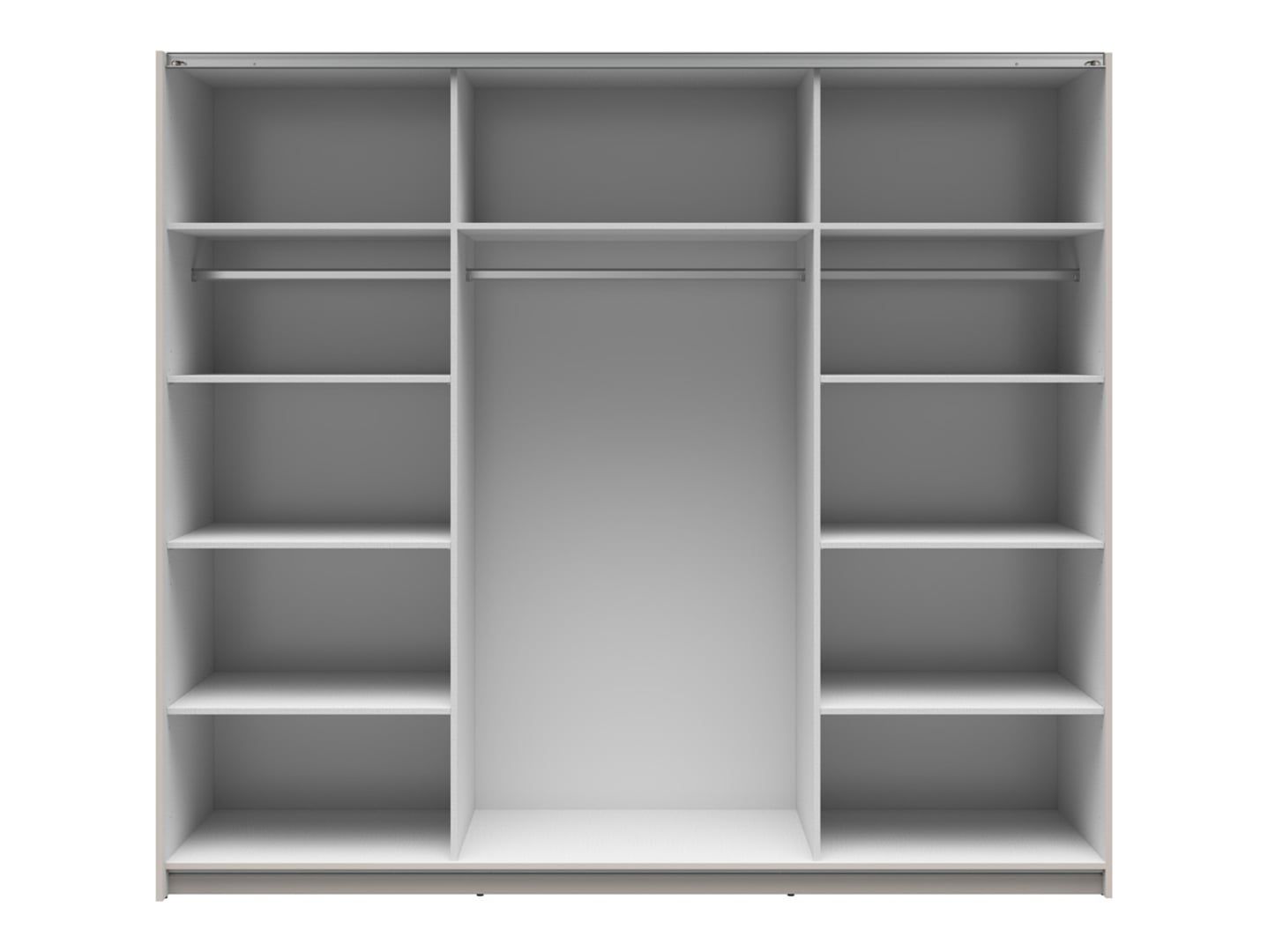 The Tetrix 220 Sliding Wardrobe – Functional Wardrobe Space. The Tetrix collection combines modern style, functionality, and elegance. Finished in a timeless cashmere color, the furniture blends seamlessly with a variety of interior designs, creating an aesthetically pleasing and organized space in a bedroom, dressing room, or youth room. Functionality and Configuration: The Tetrix 220 Sliding Wardrobe is designed with ergonomics and everyday comfort in mind. Its large capacity allows you to easily organize clothes, textiles, and accessories. Two sliding, mirrored fronts not only facilitate access but also visually expand the space. Inside, you’ll find two hanging rails, perfect for storing shirts, jackets, or dresses, and two deep upper shelves for less frequently used items. The standard system also includes six additional shelves that you can freely configure. If you need more space for hanging clothes, simply remove them. The gray linen interior offers an elegant and modern look, highlighting the high quality of its craftsmanship. The wardrobe is made of durable laminated board, resistant to everyday use. The stated depth does not include fronts with handles, which is worth considering when planning your space. Special features: dimensions: depth 60 cm, width 220 cm, height 195.5 cm, color: cashmere, 2 sliding mirrored fronts, 2 hanging rails, 2 deep upper shelves, 6 additional removable shelves, gray linen interior, shelving layout can be customized, available in a variety of colors, laminated board resistant to everyday use. Summary: The Tetrix 220 sliding wardrobe is the perfect solution for those who value order, elegance, and functionality. Thanks to its well-thought-out interior and modern mirrored fronts, it will become a practical and stylish element of your bedroom.