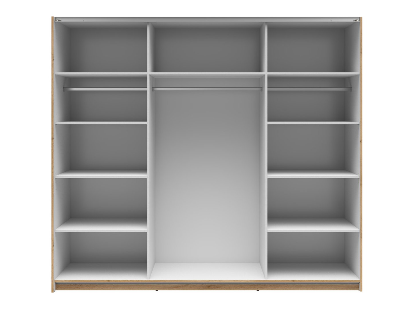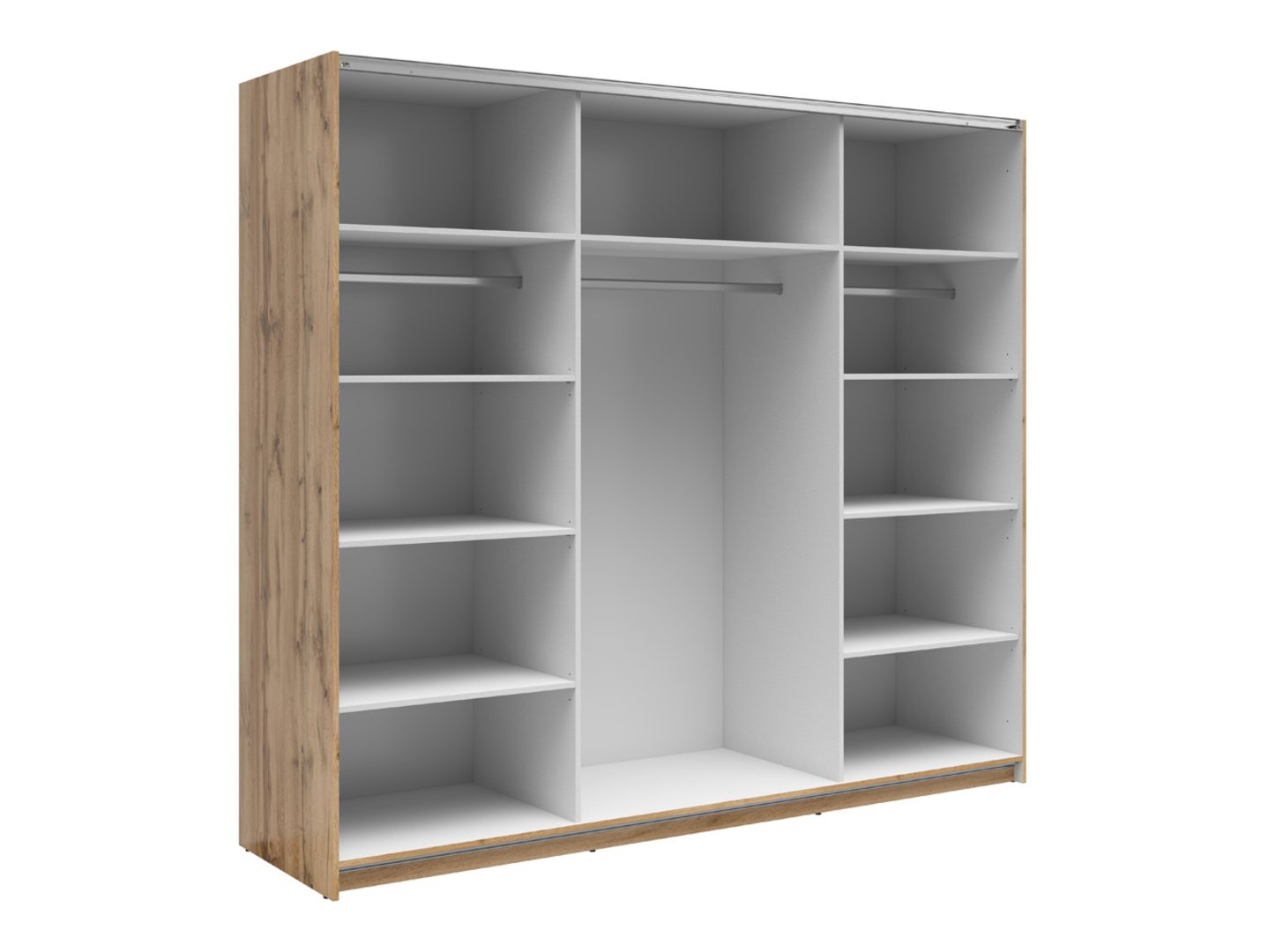The 220 Tetrix Sliding Wardrobe – Your Perfect Storage Space. A wardrobe is an essential piece of furniture for any home. The modern 220 Tetrix sliding wardrobe is a solution that will not only help you organize your clothes and textiles but also add elegance and functionality to your space. Here are the key features of this unique piece: 2 sliding doors, including one mirrored: The Tetrix wardrobe’s sliding doors are a perfect solution for saving space. However, one of the mirrored doors is not just decorative – it’s also a practical solution that makes it easier to check your appearance while getting dressed. 3 hanging rails: Thanks to the three hanging rails, you have plenty of space for storing clothes. You can freely arrange your outfits by type and season, making it easier to choose the right outfit every day. 3 deep upper shelves: The upper shelves are perfect for storing items that don’t necessarily need to be hung on hangers. Here you’ll find space for underwear boxes, handbags, and other accessories you want to keep close at hand. 6 additional shelves are standard: This solution offers even more storage space. Importantly, the shelves are adjustable, allowing you to customize them to your needs. If you need more hanging space, simply pull out the shelves to gain additional space. The gray interior of the Tetrix wardrobe gives it elegance and makes it easier to locate stored items. This practical feature makes it easy to use. If gray doesn’t suit your décor or preferences, the Tetrix wardrobe is available in a variety of colors, allowing you to match it to your style. The Tetrix collection also offers other furniture that can be combined with this wardrobe to create a cohesive look in a bedroom or other space. This allows you to enjoy a beautiful, functional interior tailored to your needs. Investing in furniture that combines style, functionality, and quality is always a good choice. The 220 Tetrix sliding wardrobe is a piece of furniture that will meet these expectations, helping you maintain order in your home and adding a modern touch. Make your space a place where everything has its perfect place.