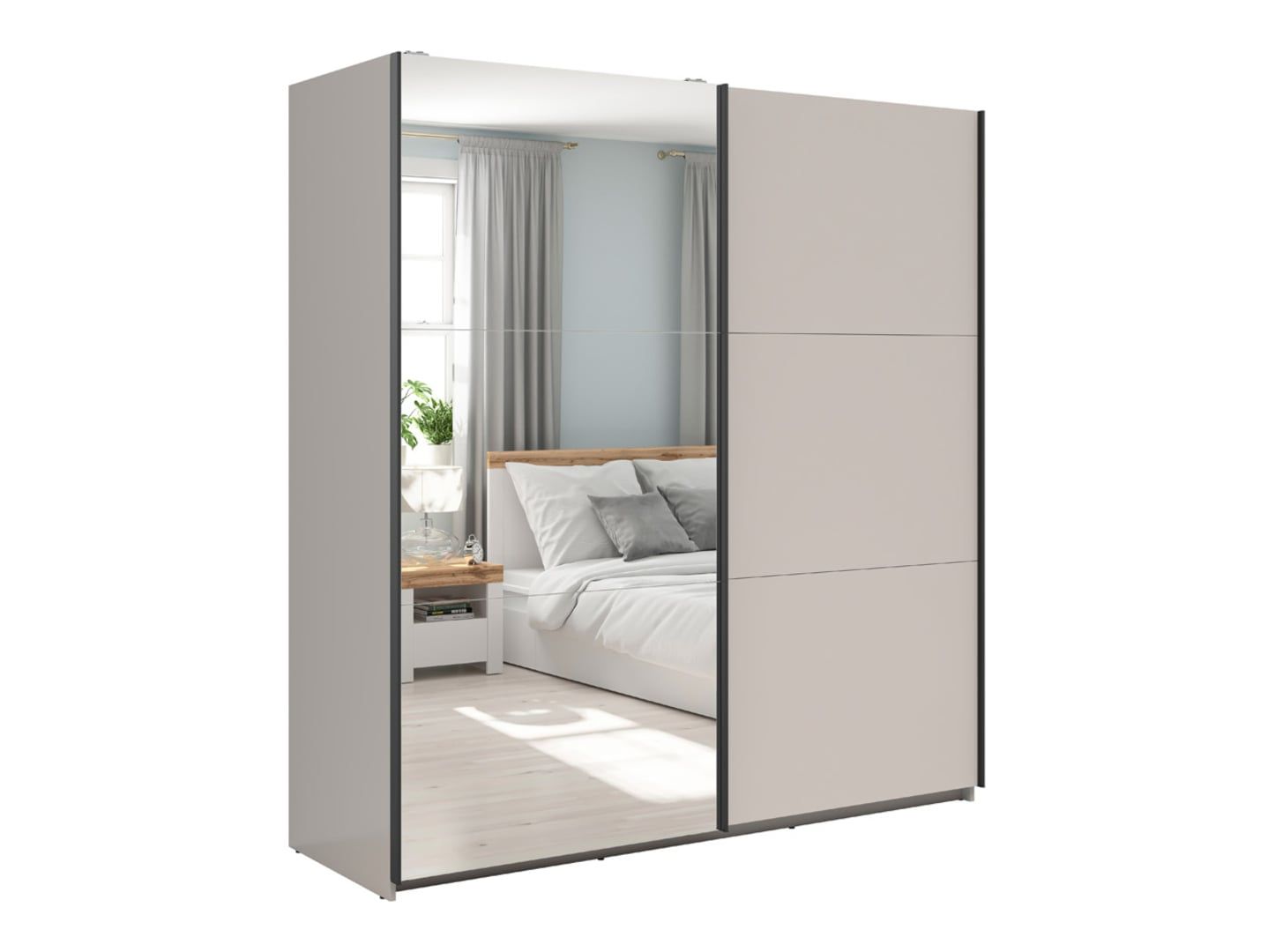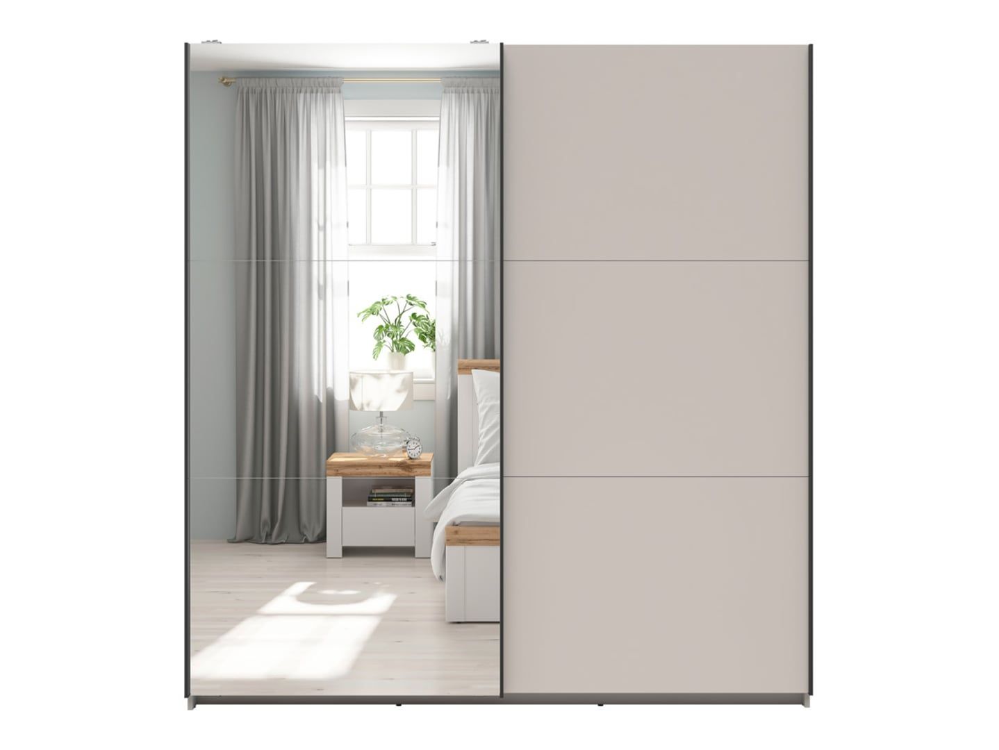 The 183 Tetrix Sliding Wardrobe – A Modern Way to Perfect Organization. The Tetrix collection combines elegance, functionality, and modern design. Stylishly finished in cashmere, it complements bedrooms, dressing rooms, and youth rooms, creating a tidy and comfortable space. Functionality and Configuration: The 183 Tetrix Sliding Wardrobe is designed for those who value spaciousness and ease of use. Its generous width and well-thought-out interior make organizing clothes, textiles, and accessories effortless. The wardrobe features two sliding doors, one of which is mirrored – a great way to visually enlarge a room and add functionality. Inside, you’ll find two hanging rails that accommodate outerwear, shirts, dresses, and jackets. Additionally, there are two deep upper shelves and three additional shelves that can be pulled out to create more space for hanging clothes. The gray linen interior offers an exceptionally elegant and modern look. The wardrobe is made of durable laminated board, resistant to everyday use. The manufacturer notes that the stated depth does not include the thickness of the fronts with handles – it’s worth considering this when planning the space. Special features: dimensions: depth 60 cm, width 183.5 cm, height 195.5 cm, color: cashmere, 2 sliding fronts, including one with a mirror, 2 hanging rails, 2 deep upper shelves, 3 additional removable shelves, gray linen interior, other color options available, space can be configured to suit your needs, wear-resistant laminated board. Summary: The 183 Tetrix sliding wardrobe is an elegant, spacious, and practical solution that will work well in any bedroom. The functional interior, mirrored front, and modern cashmere color will allow you to create an aesthetically pleasing space that’s easy to keep organized.