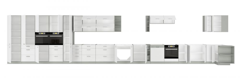 high-quality upper fronts made of glossy PVC technology, resistant to unfavorable kitchen conditions