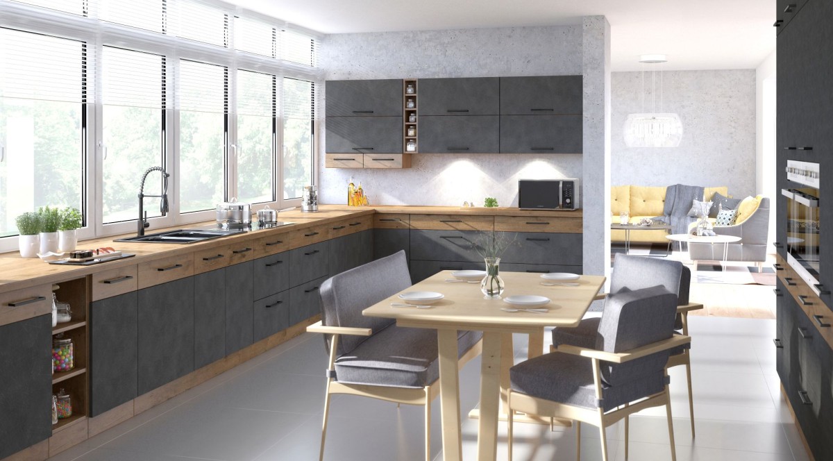 The Vigo kitchen is a set of very practical and beautiful furniture. The system consists of dozens of cabinets – Scandinavian-style kitchen furniture. The cabinet fronts are solid. The countertops and carcasses form a uniform color scheme. Solid handles add character to the furniture and facilitate access to the products stored within. They perfectly complement the entire set.