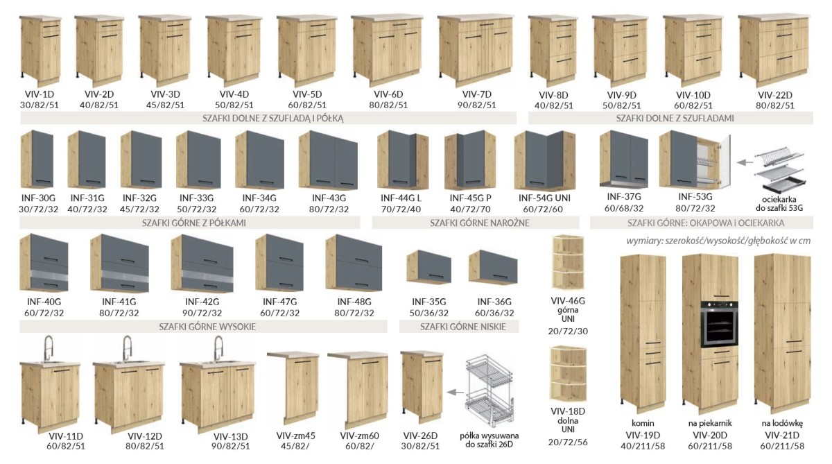 Plinths – three colors to choose from: Sonoma oak, artisan oak, or Andersen pine