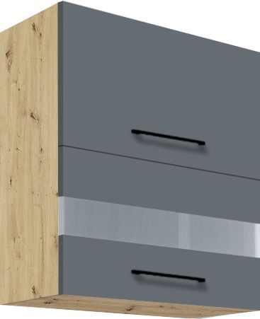 fronts – gloss white + Artisan, matt gray + Artisan (upper cabinets without inserts)