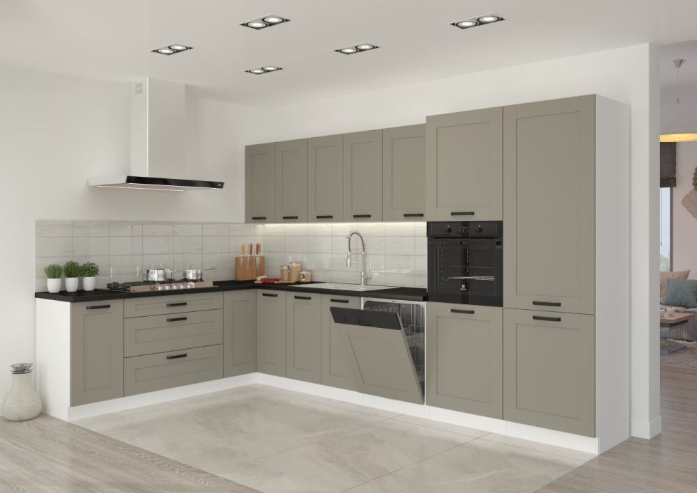 Fronts: 16mm MDF, clay grey with a milling cut – 1mm ABS edging (gray with a beige tint)