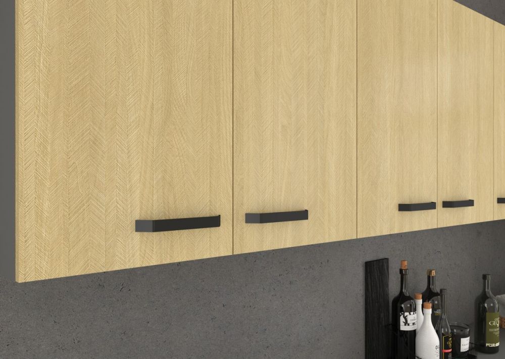 The Scandi kitchen is a set of highly practical and beautiful furniture. The system consists of dozens of cabinets – Scandinavian-style kitchen furniture. The cabinet fronts feature a solid herringbone pattern. A wide selection of countertops. Solid handles add character to the furniture and facilitate access to the products stored within. They perfectly complement the overall set. Parameters: