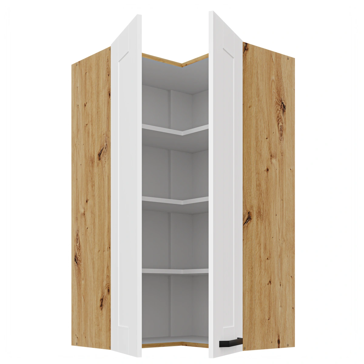 Viršutinė kampinė spintelė 60 cm Luna balta/artisan 60×60 GN-108 2F 90 laipsnių