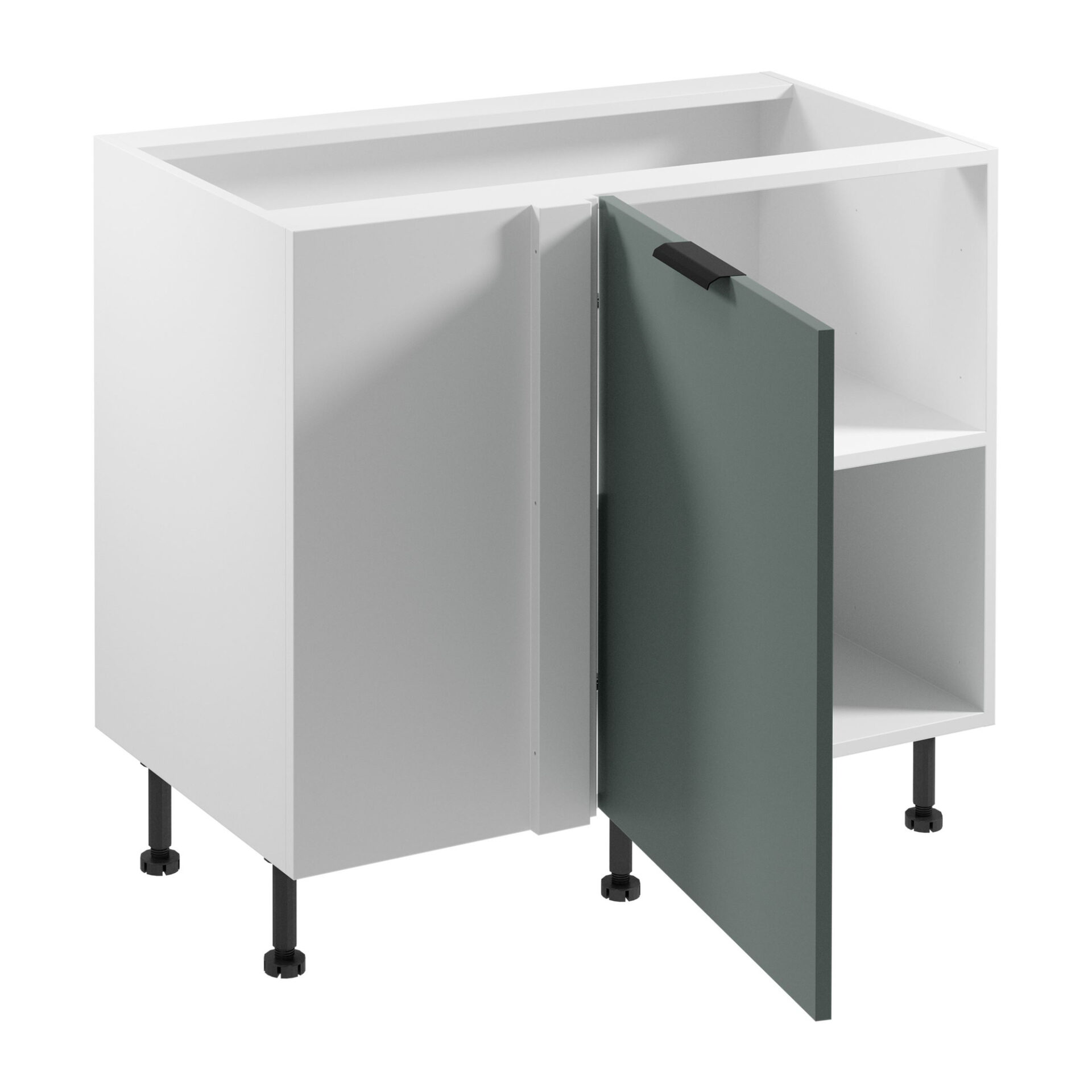 Discover the unique Sorento D100N base kitchen cabinet, which will bring harmony to your kitchen. Its elegant color scheme, combining a matte green front with matte white details, makes it not only a functional piece of furniture but also a stylish accent in your space. Regardless of your kitchen style, this cabinet will perfectly complement modern interiors, giving them a fresh and distinctive look. The Sorento cabinet is not only beautiful but also functional. Thanks to its clever design, featuring a single internal shelf, it easily accommodates all your kitchen essentials. Extra-high 15 cm legs and adjustable legs make this cabinet a perfect addition to any interior, providing you with additional storage space – an ideal solution for smaller kitchens where every centimeter is crucial. Made of high-quality laminated board, the Sorento cabinet is highly resistant to damage, ensuring its durability and longevity. The soft-close Clip-On hinges make using this cabinet comfortable and safe, eliminating the noise associated with closing the door. It’s an ideal option for those who value functionality and aesthetics in one.