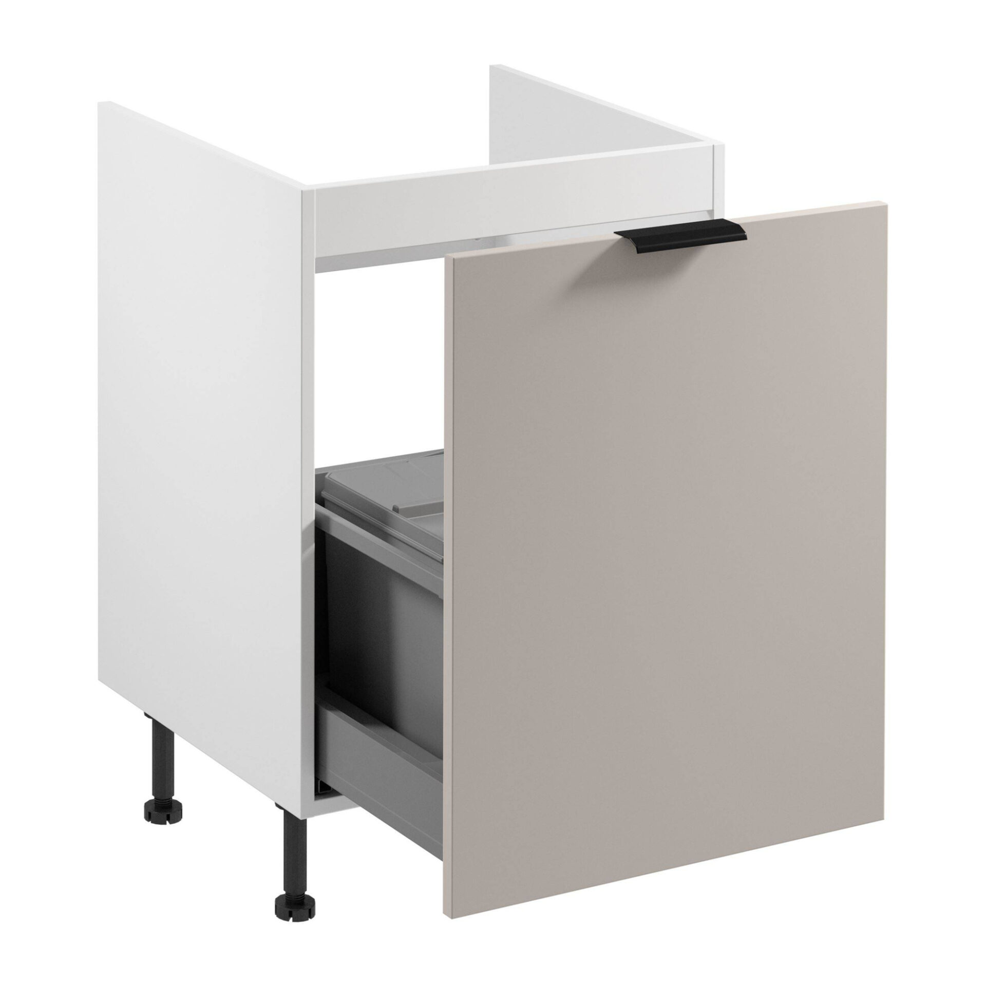 1S Apatinė virtuvės spintelė su rūšiavimo įdėklu Sorento D60ZS AX Matinė balta matinė smėlio spalvos