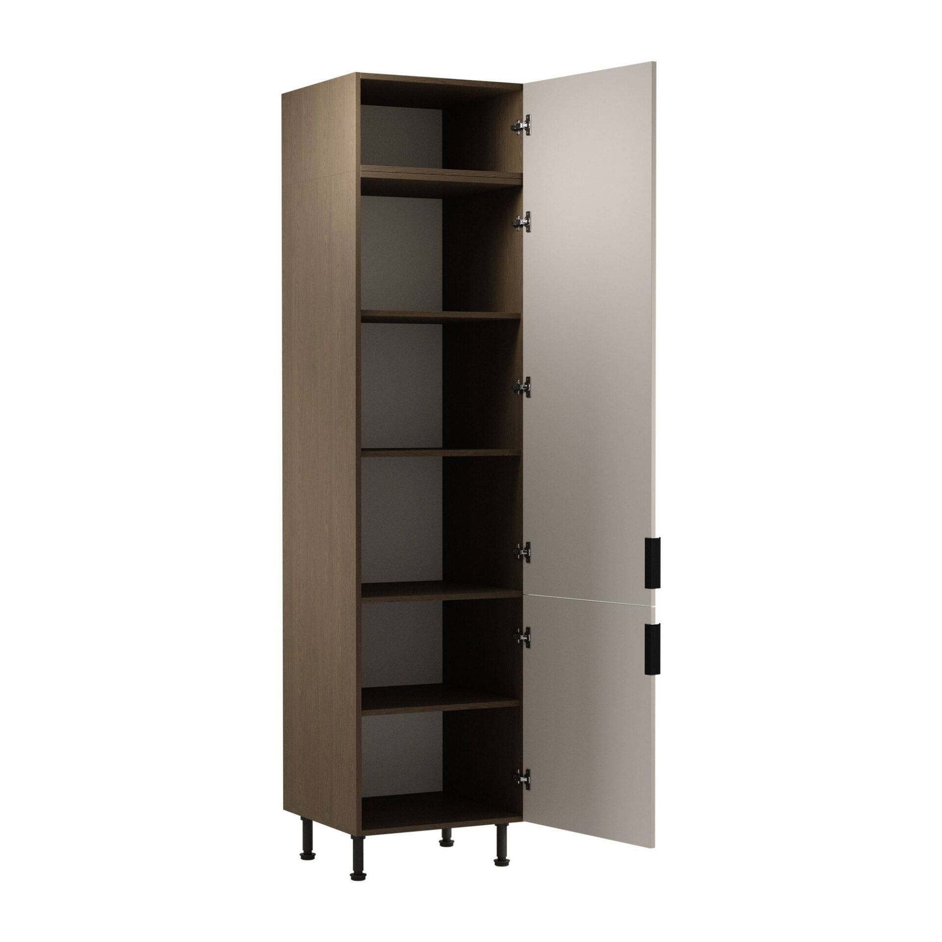 Create a kitchen space brimming with elegance and functionality with the Sorento D60RWN 2-D Lower Kitchen Cabinet. This model exemplifies the refined combination of modern design and a unique color palette. The matte beige front complements the Baltic Storm body perfectly, creating a subtle contrast that catches the eye and adds class to any interior. A key advantage of the Sorento cabinet is its high functionality. The interior houses spacious shelves that accommodate all your essential kitchen accessories, and thanks to its stable construction, they can easily support your heaviest pots. Black metal handles add a modern touch, while their ergonomic shape ensures comfort of use. Thanks to carefully selected materials, the cabinet not only looks stunning but is also resistant to everyday challenges. The 18mm thick laminated board is scratch- and damage-resistant, ensuring longevity. Clip-On hinges with a soft-close function ensure comfortable use and protect against unwanted noise.