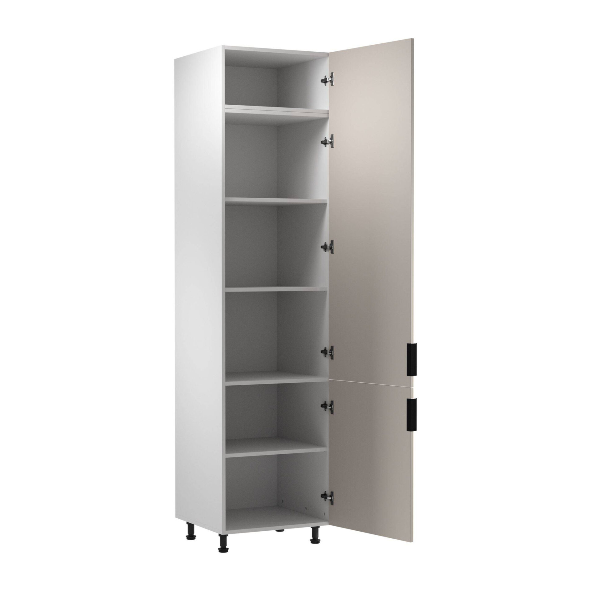 The Sorento 2-D Lower Kitchen Cabinet is a perfect blend of elegance and functionality, adding a touch of luxury to your kitchen. Its matte beige front harmonizes with the matte white body, creating a stylish, modern color scheme. This color scheme brings peace and balance to the interior while offering limitless design possibilities. The Sorento cabinet’s functionality is distinguished by its solidly crafted elements that ensure everyday comfort. Equipped with adjustable, high legs, the cabinet will fit perfectly into any kitchen, adding practicality and aesthetic appeal. This makes small renovations or larger kitchen transformations easy and enjoyable. The Sorento cabinet is not only beautiful but also practical. Its well-thought-out layout, with five shelves, allows for efficient kitchen organization. Each shelf provides additional storage space for accessories and food, making it easier to keep the kitchen tidy and clean.