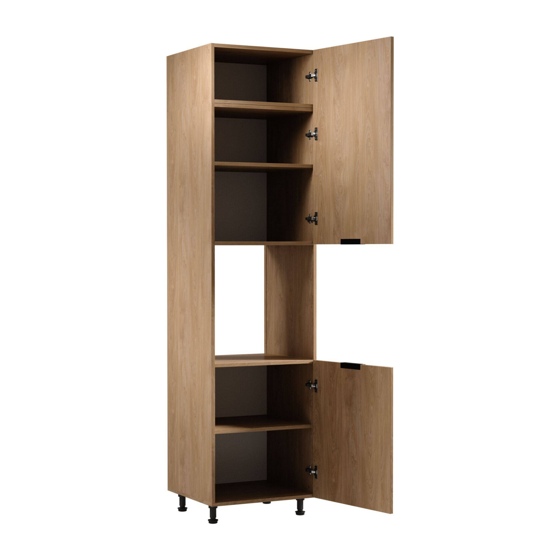 Introducing the Puccini Sorento D60PWN P/L 2-D Base Kitchen Cabinet, the perfect solution for all lovers of elegance and functionality. The unique Puccini color combines simplicity and elegance, creating an atmosphere of luxury and sophistication in any kitchen. It’s a perfect choice that will emphasize the owner’s refined taste. The cabinet is made of high-quality laminated board, which not only gives it a modern look but also makes it resistant to damage and everyday wear. This kitchen element allows for the easy integration of an oven, creating an extremely practical and aesthetically unified space. Black metal handles add elegance and are comfortable for everyday use. Thanks to the adjustable leg height (15-17 cm), this cabinet offers flexibility and adaptability to individual needs and room conditions. The soft-close system provides additional comfort, eliminating the sound of sudden door closing, which is extremely practical in everyday use and increases the durability of the cabinet.