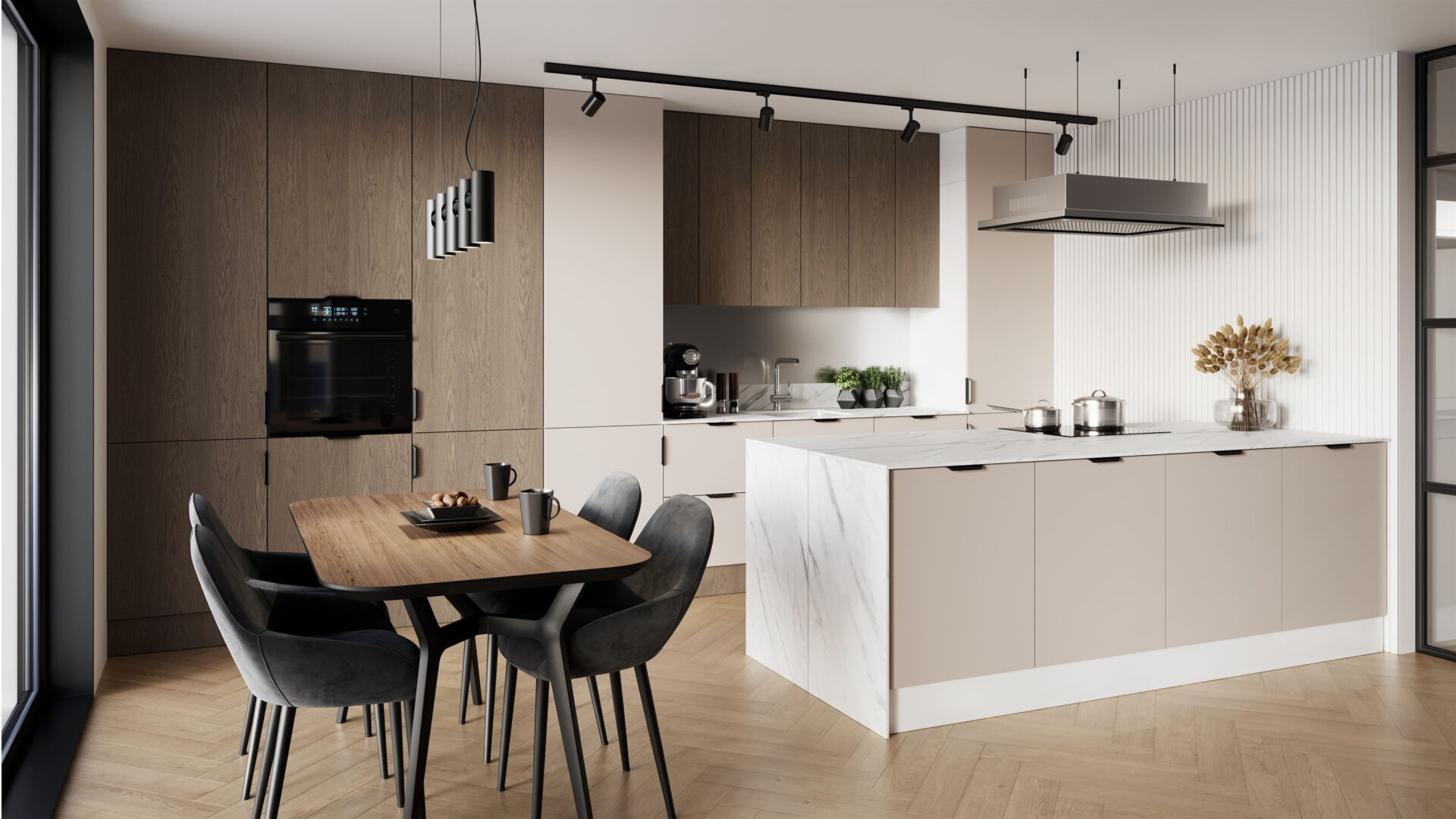 The 2S Sorento D45S2 AX lower kitchen cabinet in the unique Baltic Storm color is an excellent choice for those who want to incorporate not only stylish furniture but also top-notch functionality into their interior. Its elegant design will seamlessly complement a variety of kitchen designs, adding a modern touch. The cabinet’s versatility makes it the heart of any kitchen. Two drawers, each with a maximum load capacity of 40 kg, are designed for efficient use of space. Full extension allows for easy access to all accessories, making everyday cooking a pleasure. Tall, 15 cm adjustable legs add a touch of lightness to the cabinet, and their black color contrasts beautifully with the elegant fronts. Made of durable laminated board, it offers damage resistance, making it an ideal choice for heavily used kitchens. The pleasant-to-touch black handles not only enhance the aesthetics of the furniture, but are also a practical detail that facilitates everyday use of the cabinet.