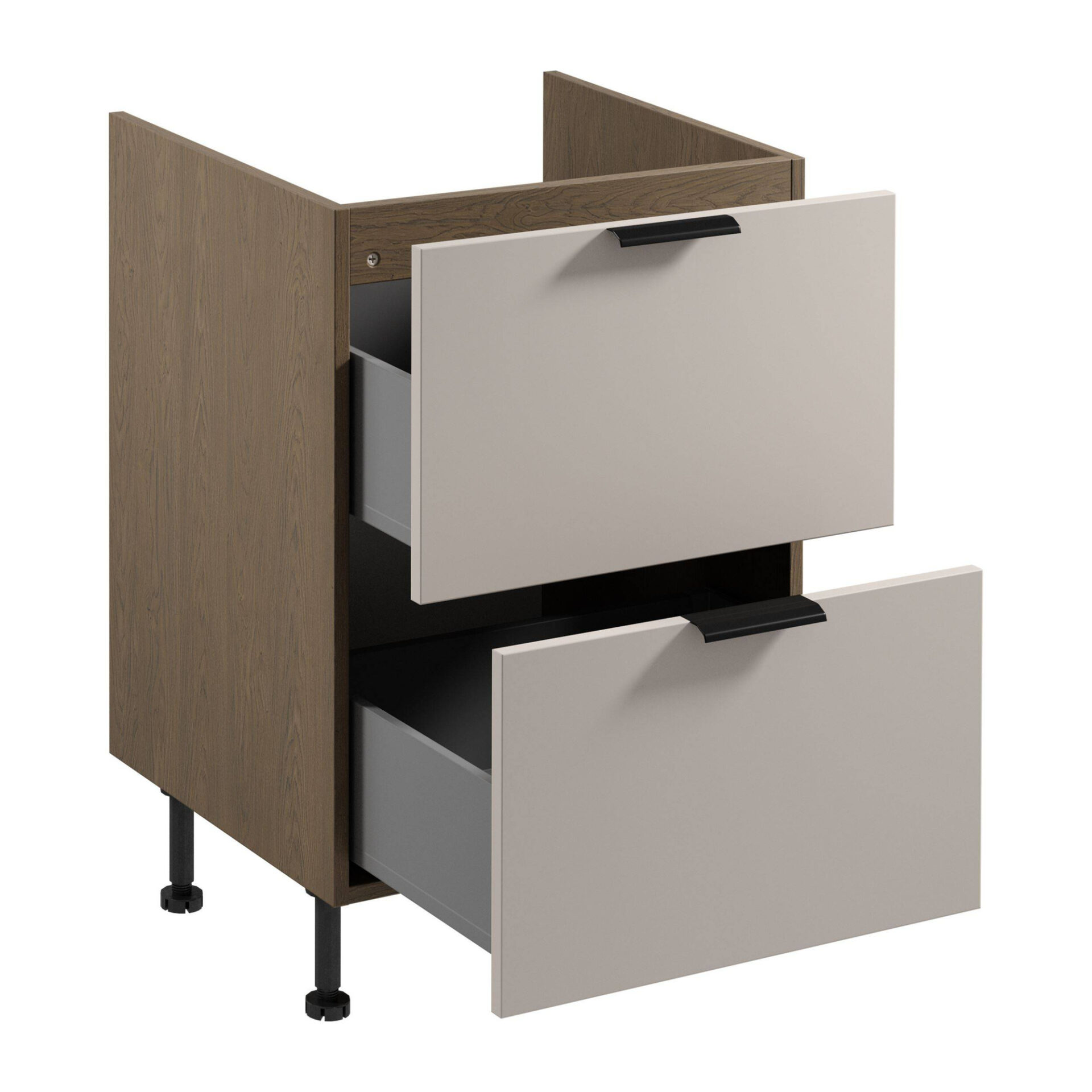 Discover the elegance and functionality of the Sorento D60IN AX Baltic Storm 2S lower kitchen cabinet in matte beige. This unique cabinet, designed with modern spaces in mind, brings not only aesthetics but also exceptional practicality to your kitchen. The combination of beige fronts with the dynamic color of the Baltic Storm body creates a harmonious composition that catches the eye and adds character to any interior. Add style to your kitchen with matte fronts made of laminated board, which are not only durable but also easy to clean. Subtle black metal handles emphasize the modern design while also creating comfort for everyday use. Thanks to adjustable legs that allow for height adjustment, this cabinet will perfectly adapt to your individual needs, ensuring stability and durability for years to come. The Sorento kitchen cabinet also stands out for its practical solutions that make everyday meal preparation more enjoyable. Two outer drawers are perfect for storing all kinds of kitchen accessories, and full-extension slides guarantee easy access to everything you need. The drawers’ soft-close action ensures comfort and a pleasure to open every time.