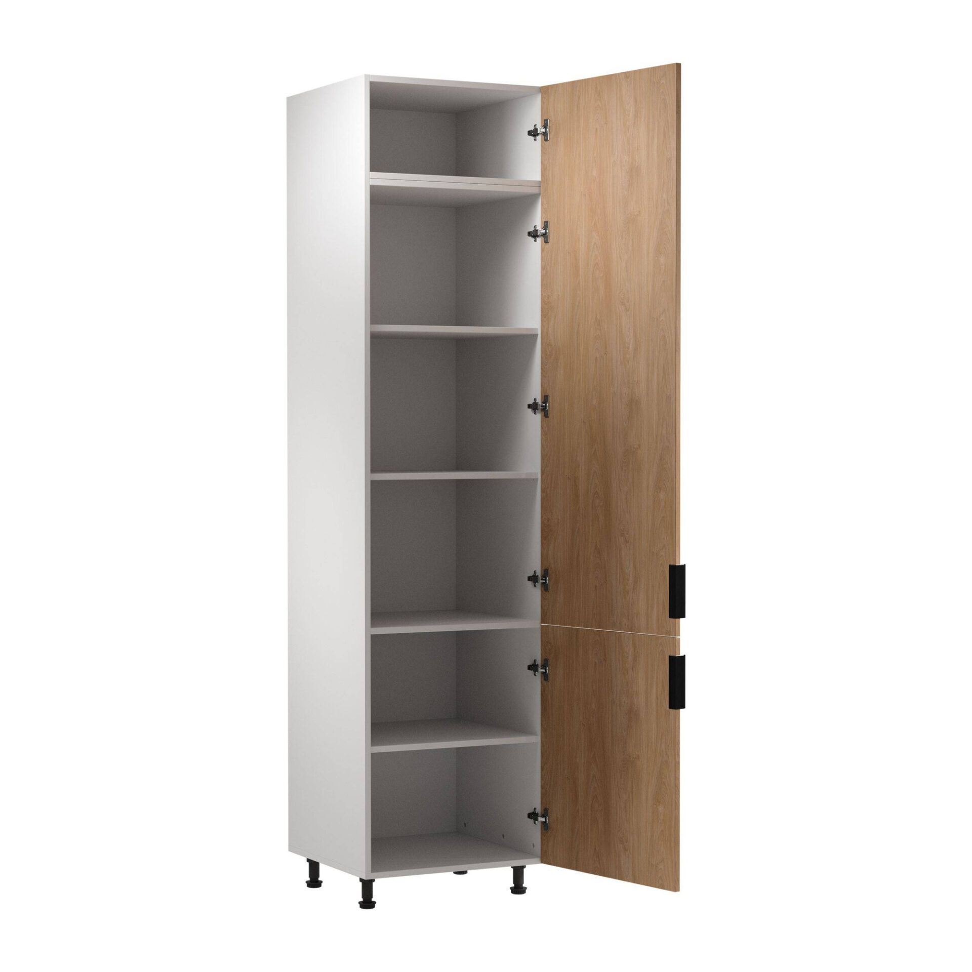 Discover the exceptional elegance and functionality of the Sorento D60RWN base kitchen cabinet in Puccini with a matte white body. This stylish cabinet is the perfect addition to any kitchen, combining modern design with practicality. Its subtle color scheme will add a touch of lightness and freshness to your interior, emphasizing the refined character of your cooking space. The Sorento cabinet offers not only a beautiful appearance but also exceptional functionality. Adjustable legs allow you to easily adjust the height to your kitchen’s needs, ensuring comfort and ergonomic use. Soft-close hinges are an additional advantage, making using this unit a pleasure every day. A timeless black metal handle gives the cabinet a modern character and ensures ease of use. The laminated surface is damage-resistant, ensuring that the cabinet will serve you for years to come, while maintaining its pristine appearance. The optimal length and spacing of the shelves allow for organized storage of all your essential kitchen accessories.