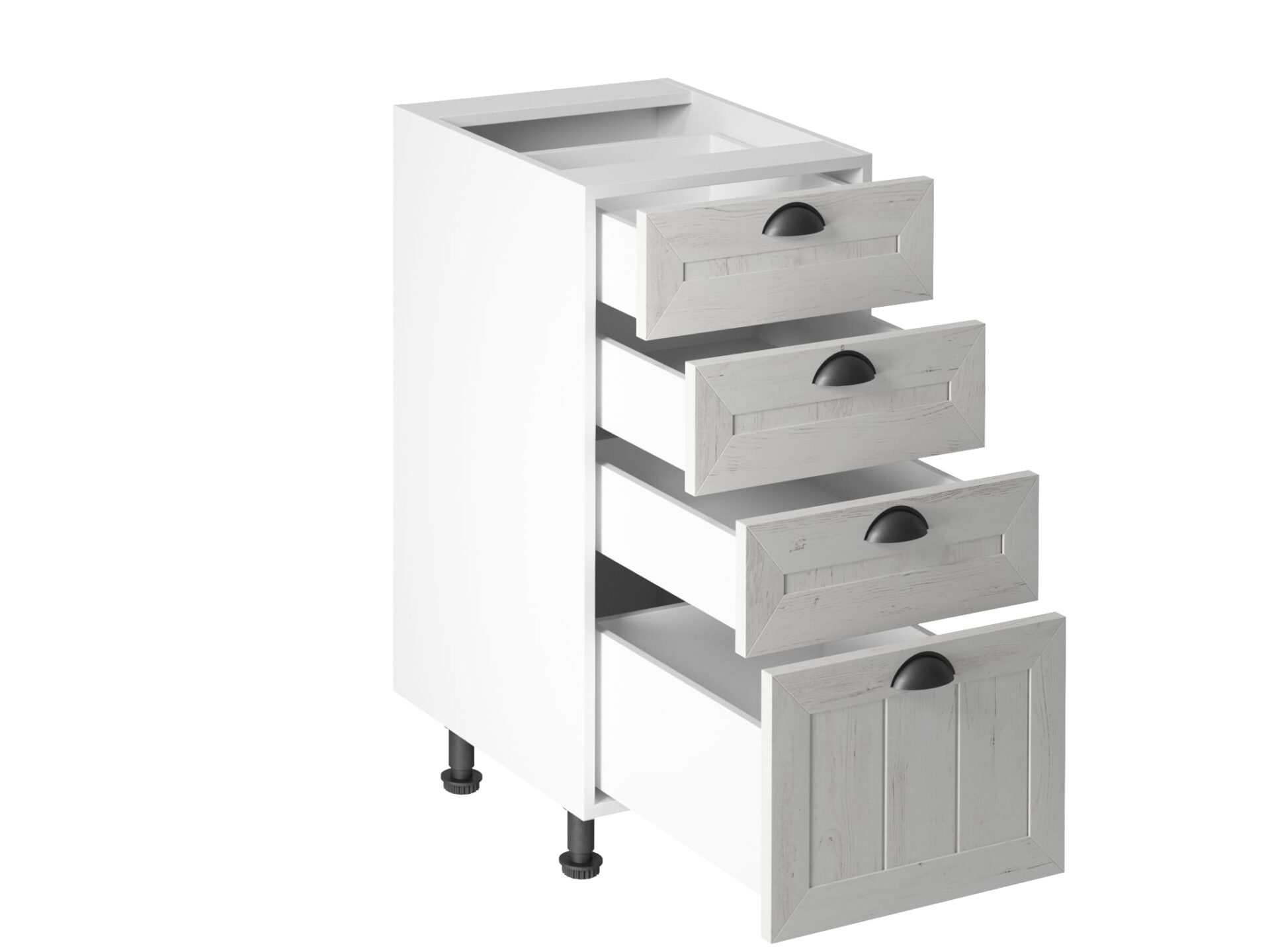 Apatinė virtuvės spintelė su 4 stalčiais, D40S4, provanso pušis, Andersen balta matinė