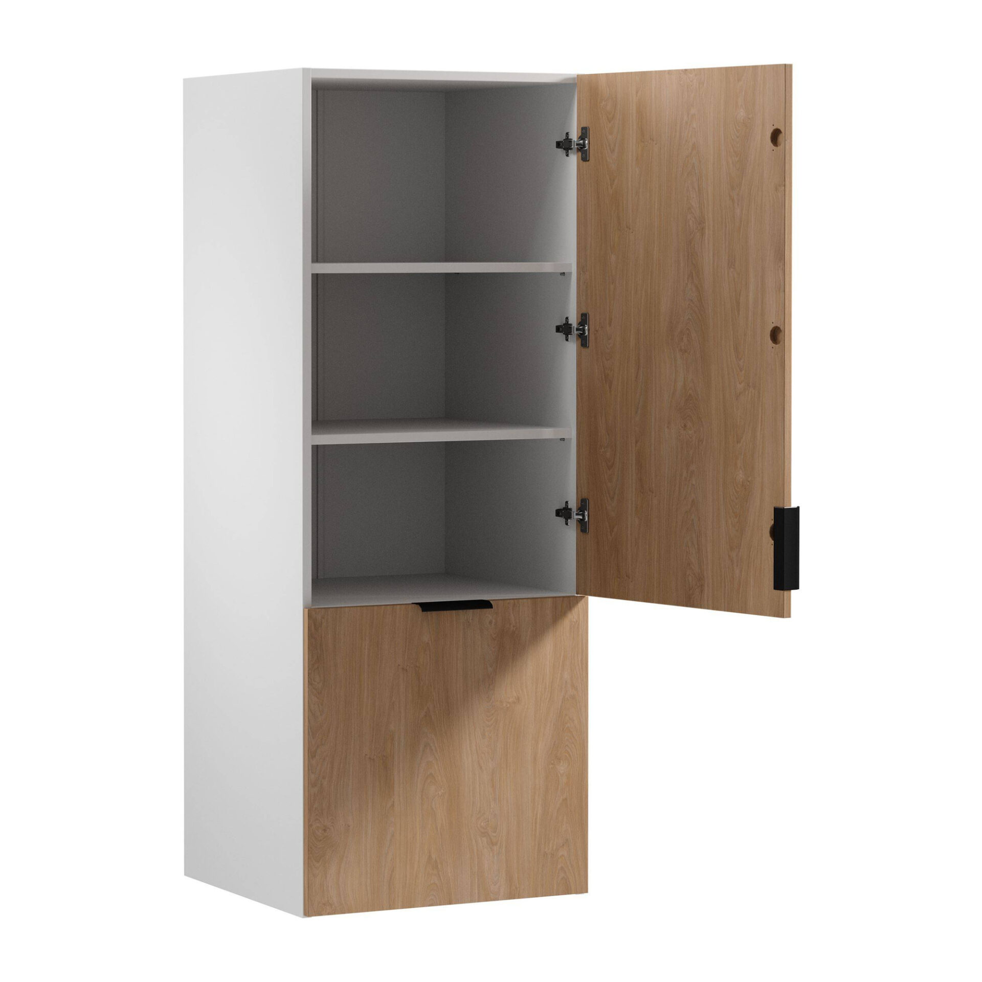 Add a modern touch to your kitchen with the elegant Sorento N60N upper kitchen cabinet in a sophisticated Puccini color. Its minimalist design complements modern interiors perfectly, offering aesthetic appeal and functionality in one. The matte white body creates a harmonious backdrop for the fronts, which attract attention with their elegance and subtlety. Style and functionality go hand in hand, making this cabinet the perfect solution for any kitchen. Its construction is based on a durable, damage-resistant laminate board, ensuring longevity and aesthetic appeal for years to come. The Free Up lift and Clip-On hinges with a soft-close mechanism ensure smooth and silent opening and closing, something you’ll surely appreciate during everyday use. The Sorento N60N cabinet not only looks great but also enhances the functionality of your kitchen. The well-thought-out shelf layout allows for efficient storage of dishes and other kitchen accessories. The pull-out shelf on runners is a practical solution, allowing easy access to frequently used items.