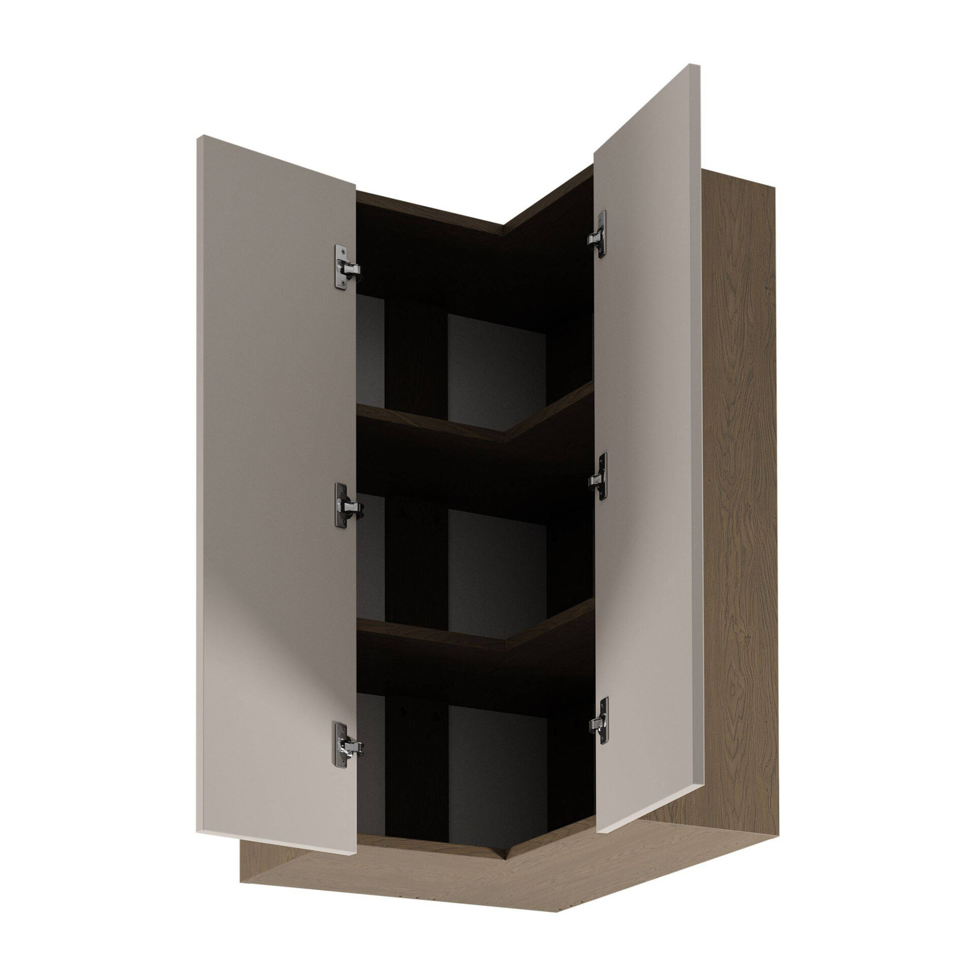 Its aesthetic design, combined with the durability of the materials, makes it the perfect solution for any kitchen. The matte beige front subtly contrasts with the Baltic Storm body, making it an incredibly attractive design element. This cabinet not only adds elegance but also allows you to maximize the use of kitchen corners, which are often overlooked.