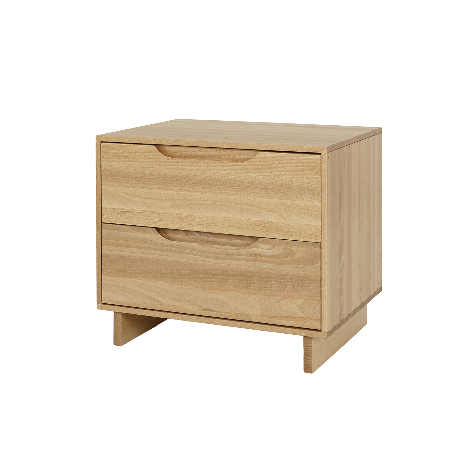 The SN420 nightstand, thanks to its minimalist form and attention to detail, perfectly complements a fashionable, modern style. Despite its small size, it features two spacious, handleless drawers perfect for storing cosmetics or a book. The warmth of the natural beech wood from which it is made will create a cozy atmosphere in the bedroom. The small but beautiful tabletop is the perfect spot for a family photo or a decorative nightstand. It sits on tall wooden legs, adding to its charm.