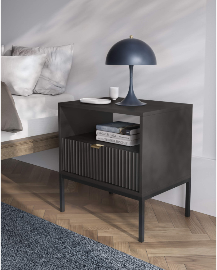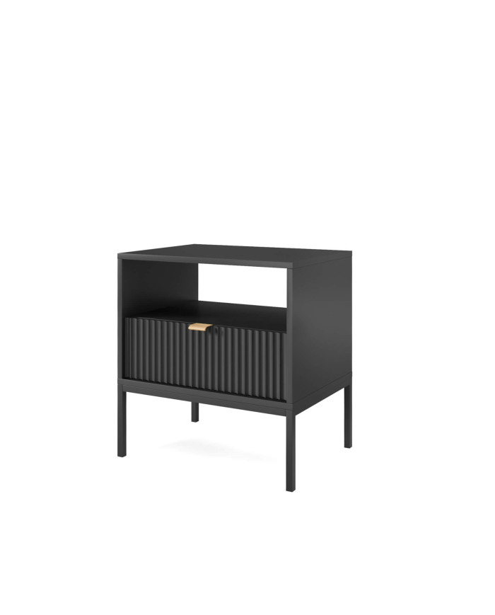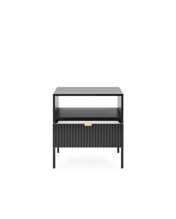 Nova S54 naktinis staliukas su stalčiumi, įduba, juodas/juodas rėmas