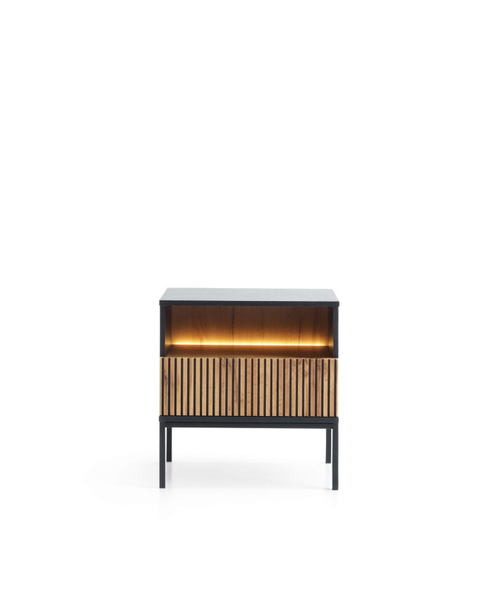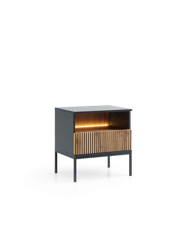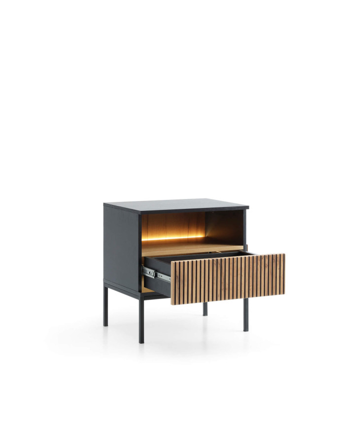 Sento S54 naktinis staliukas, stalčius, įleidžiamas, su apšvietimu, juodas/Wotan ąžuolas