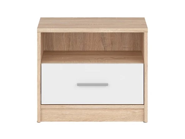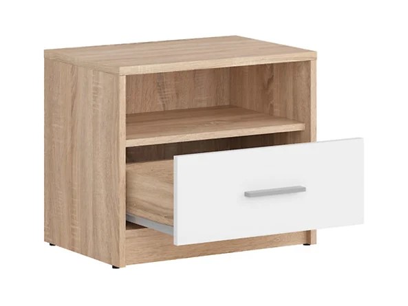 Nepo Plus Nightstand – More Than Just an Alarm Clock. Are you planning to furnish a modern youth room or bedroom? If so, the Nepo Plus collection is worth considering, distinguished not only by its simple style but also by its high-quality craftsmanship. Let’s take a closer look at this extraordinary piece of furniture that can become a key element of your interior. Can you imagine a perfect morning? Of course you can! The Nepo Plus Nightstand will definitely help you in such a situation. It’s not only a practical place for an alarm clock, but also many other little things that make your mornings pleasant. Simply place a glass of juice and a favorite photo on it, which you can always have at hand. But that’s not all! The handy drawer can store medicines and beauty products, while the open shelf is the perfect place for your favorite book or magazine. All this means your morning can start exceptionally well. One of the key advantages of the Nepo Plus Nightstand is its laminated surface. This solution will delight you twice over. Firstly, the laminate provides increased scratch resistance, meaning the furniture will look like new for a long time. Secondly, its ease of cleaning is a huge plus, especially in bedrooms, where cleanliness and hygiene are key. The Nepo Plus collection also offers a variety of color options. You can choose from solid shades or stylish color combinations, allowing you to create a cohesive bedroom arrangement tailored to your taste and preferences. This means the piece will be not only practical but also aesthetically pleasing, perfectly complementing the character of your interior. Practicality is a key element of the Nepo Plus nightstand. The horizontal, straight handle facilitates access to the drawer’s contents, which is especially important when you need to quickly find something inside. This solution makes using the furniture exceptionally convenient and comfortable. It’s also worth noting that the Nepo Plus nightstand perfectly complements the bed and wardrobe from the same collection. This allows you to create a cohesive space in which all elements complement each other perfectly, while meeting your needs and expectations. In short, the Nepo Plus nightstand is not only a practical piece of bedroom furniture, but also a unique decorative element that can give your interior a unique character. The availability of various color options, high-quality workmanship, and functionality are the main advantages of this collection. By choosing the Nepo Plus nightstand, you’re investing in durability and comfort, which you’ll surely appreciate for years to come.