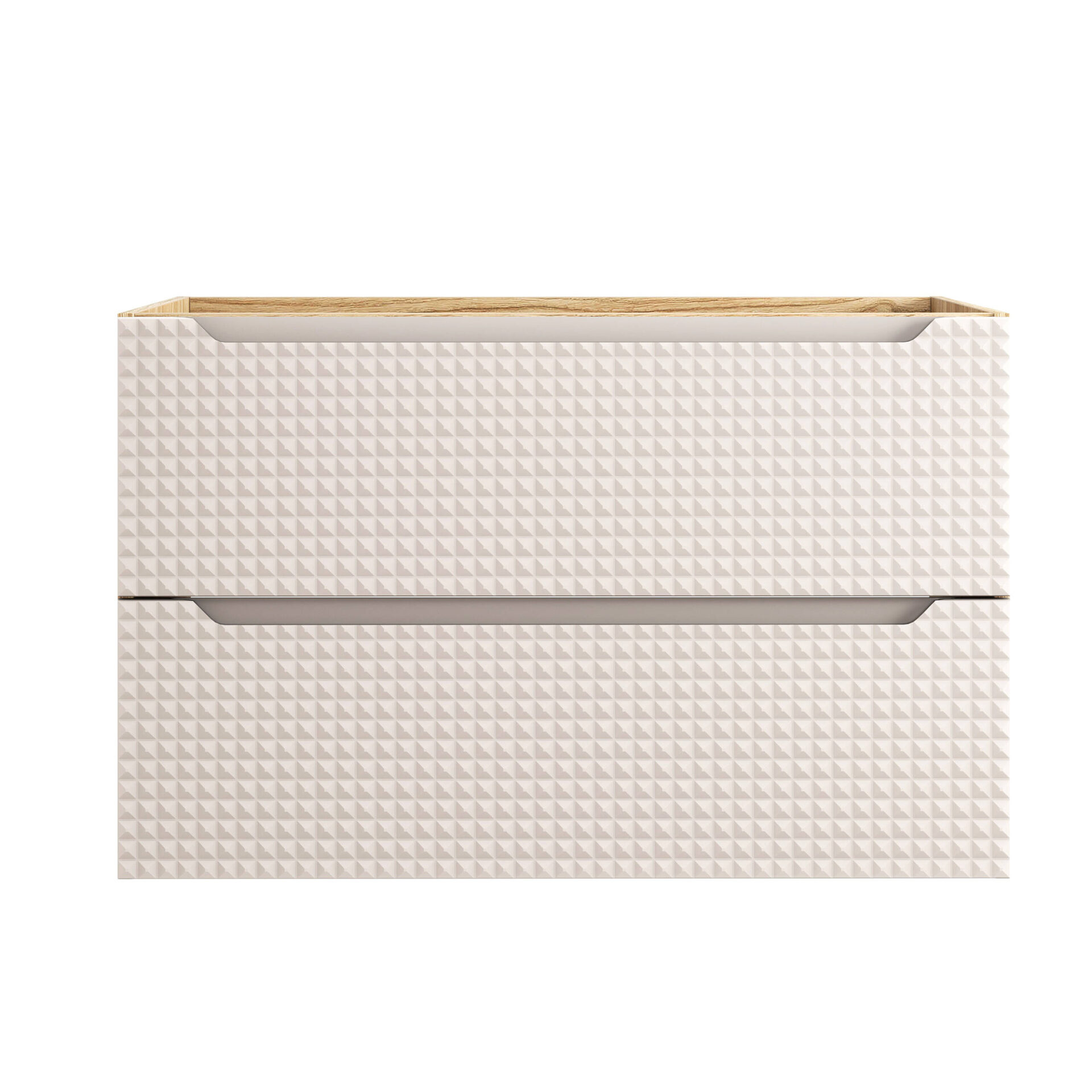 Luxor Beige 90cm Sink Cabinet. The stylish Luxor Beige sink cabinet by Comad. Crafted from high-quality MDF and laminated board, available in beige and oiled oak finishes, it features two soft-close drawers and milled handles. Perfect for elegant bathrooms. Dimensions: Width (cm): 90 Depth (cm): 46 Height (cm): 57 Technical Data: Color: Oiled Oak, Beige Material: LAMINATED BOARD / MDF Fronts: MDF Front Color: Beige Body: Laminated board Body Color: Oiled Oak Number of Drawers: 2 Runners: Soft-close Handles: Milled in the front Assembly Method: Self-assembly The Luxor Beige washbasin cabinet from Comad is the perfect solution for those seeking furniture that combines elegance and functionality. Its modern design in beige tones perfectly complements the oiled oak bodies, adding warmth and refined style to the bathroom. It’s a unique interior design element that will surely attract the attention of not only family members but also guests. The Luxor Beige cabinet’s unique aesthetic is worth noting. The grooves in the fronts add a subtle elegance, while the beige MDF finish accentuates its minimalist and modern style. Perfect for any contemporary bathroom, it offers a harmonious blend of classic and modern design.