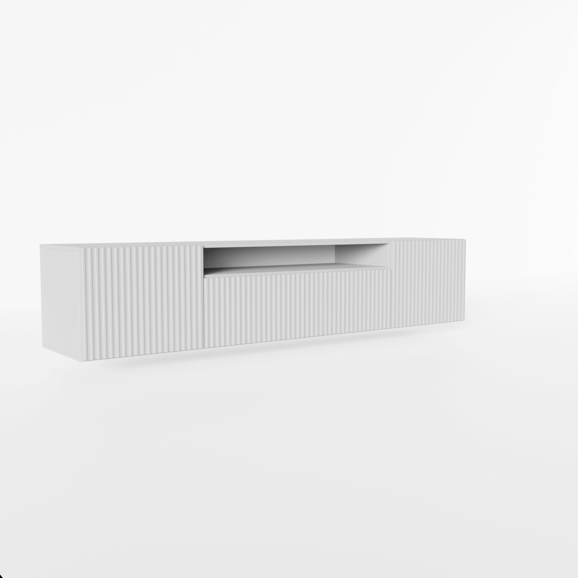 The Noemi TV stand is a modern, elegant, and functional TV stand, perfect for modern interiors. Its unique feature is a grooved finish that adds character and texture to the piece. The stand is designed to include adequate compartments and shelves to accommodate a variety of electronic equipment, including a television, set-top box, game console, and more.
