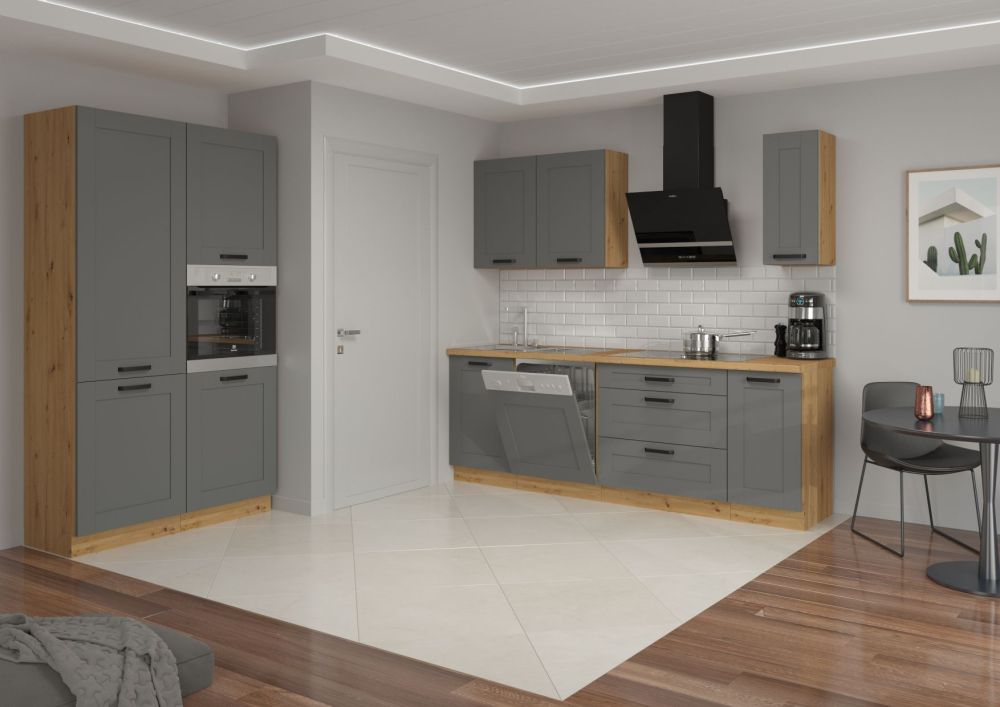 Fronts: 16mm MDF, dust grey with a milling – 1mm ABS edge (“dirty” grey)