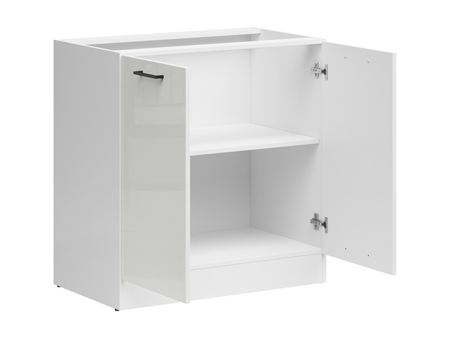 Junona Line Base Cabinet 60×82. An invaluable kitchen element that can streamline space organization and simplify everyday life. This spacious 60×82 cm cabinet is a perfect solution for both smaller and larger kitchens. A practical shelf divides the cabinet into two zones, allowing for separate storage of everyday items and those you use less frequently. A countertop is not included with this cabinet and will need to be purchased separately. This is an important consideration when planning your kitchen. The design of Junona Line kitchen furniture is elegant and timeless. The white cabinet body and chalky gloss front give it a modern look. A simple handle adds a modern touch. With this cabinet, you can store supplies, dishes, pots, and other kitchen items neatly and easily. If you prefer kitchens with a classic elegance and a modern twist, the Junona Line collection is the perfect choice. Other pieces from the collection can be coordinated with this cabinet to create a cohesive kitchen space. This will make your kitchen a functional and beautiful part of your home.