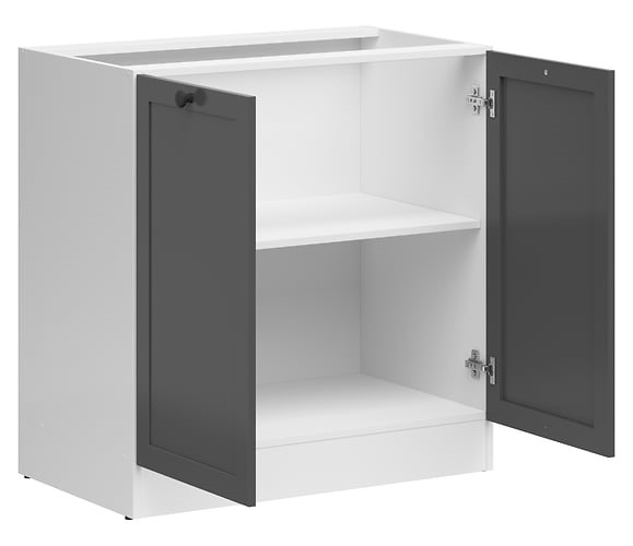 Junona Line Base Cabinet 80×82. An invaluable kitchen element that can streamline space organization and simplify daily life. This spacious 80×82 cm cabinet is a perfect solution for both smaller and larger kitchens. A practical shelf divides the cabinet into two zones, allowing for separate storage of everyday items and those you use less frequently. A countertop is not included with this cabinet and will need to be purchased separately. This is an important consideration when planning your kitchen. The design of Junona Line kitchen furniture is elegant and timeless. The white cabinet body and graphite front give it a modern look. A simple handle adds a modern touch. With this cabinet, you can store supplies, dishes, pots, and other kitchen items neatly and easily. If you prefer kitchens with a classic elegance and a modern twist, the Junona Line collection is the perfect choice. Other pieces from the collection can be coordinated with this cabinet to create a cohesive kitchen space. This will make your kitchen a functional and beautiful part of your home.