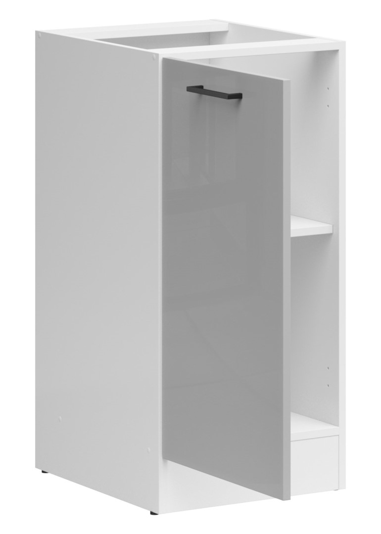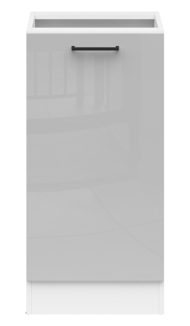 Junona Line Base Cabinet 40x82cm: A practical and stylish kitchen unit that’s perfect for a variety of kitchen spaces. Its practical shelf helps organize kitchen accessories and items by dividing the cabinet’s interior into two sections. This solution makes it easy to separate and store items you use frequently and less frequently. Despite its compact dimensions of 40x82cm, this cabinet is versatile and functional, perfectly fitting even in small kitchens. It’s a left-hand model, with fronts that open to the left. This design makes it an excellent under-counter cabinet, allowing you to store kitchen utensils next to the oven, sink, and wastebasket. This allows you to fully utilize the available space, especially in small kitchens. If you value modern design and functionality, a cabinet from the Junona Line collection is the perfect choice. The white body and light gray gloss fronts give the cabinet a modern and stylish look. Additionally, countertops are available as an option. Kitchen furniture from the Junona Line collection allows for flexible kitchen space arrangement, regardless of its size. You can combine various elements from the collection to tailor the furniture to your individual needs and create a practical and aesthetically pleasing kitchen.