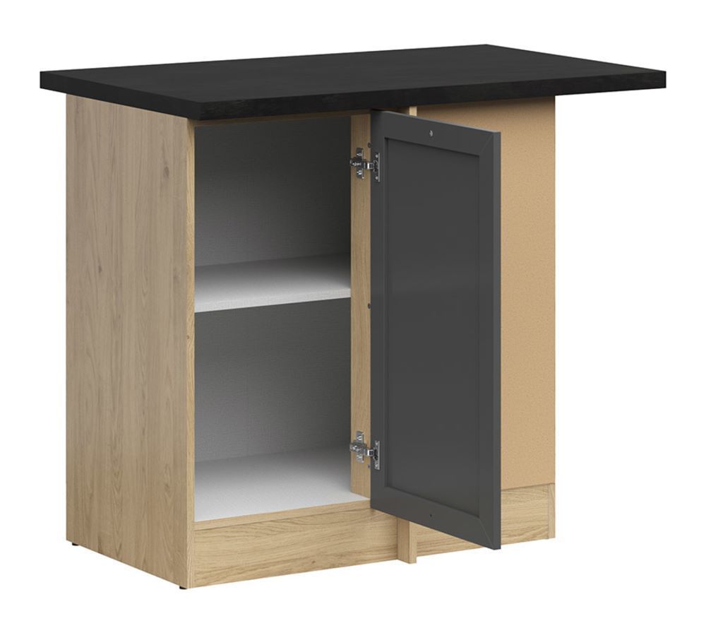 Kampinė pastatoma spintelė su dešininiu stalviršiu, 100×86 cm JUNONA LINE Bernstein ąžuolas/grafitas