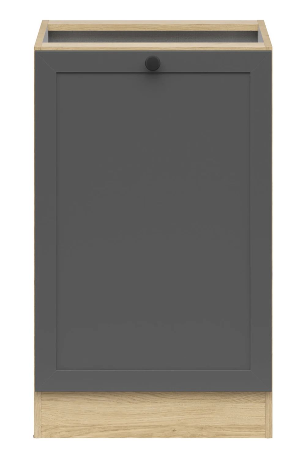 The built-in cabinet with a countertop occupies a space of 50×60 cm and opens to the right. The cabinet features a minimalist design, with a Bernstein oak body and graphite fronts, complemented by a stylish frame. Furthermore, the cabinet is equipped with a timeless knob handle, which not only facilitates opening but also adds character. Other elements of the Junona Line collection and accessories are available at emkameble.pl. Modular kitchen furniture is a solution not only for small but also for larger kitchens. Combine the base cabinet with other elements from the Junona Line collection and create a set tailored to your needs.