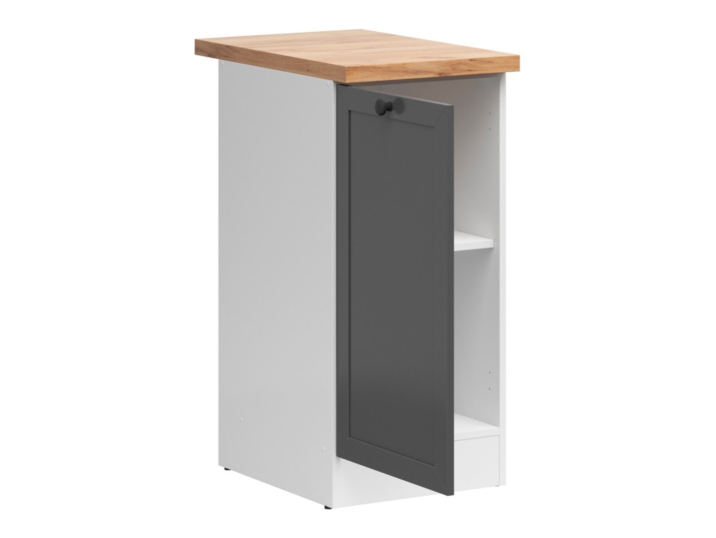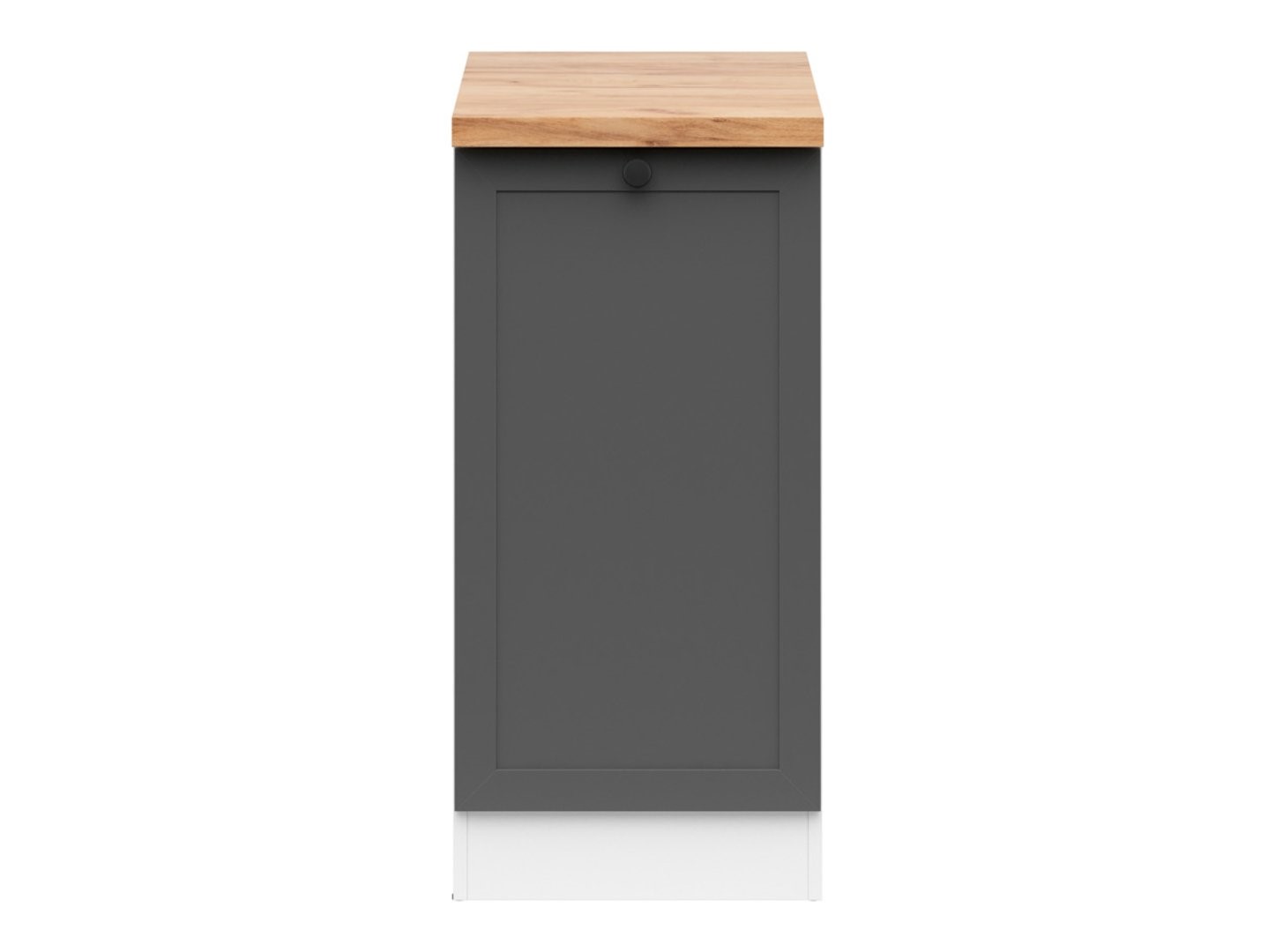 The built-in cabinet with countertop occupies a space of 40×60 cm and opens to the left. The cabinet features a minimalist design, with a white body and graphite fronts, complemented by a stylish frame. The contrasting golden craft oak countertop adds elegance. Furthermore, the cabinet is equipped with a timeless knob handle, which not only facilitates opening but also adds character. Other elements of the Junona Line collection and accessories are available at emkameble.pl. Modular kitchen furniture is a solution not only for small but also for larger kitchens. Combine the base cabinet with other elements from the Junona Line collection and create a set tailored to your needs.