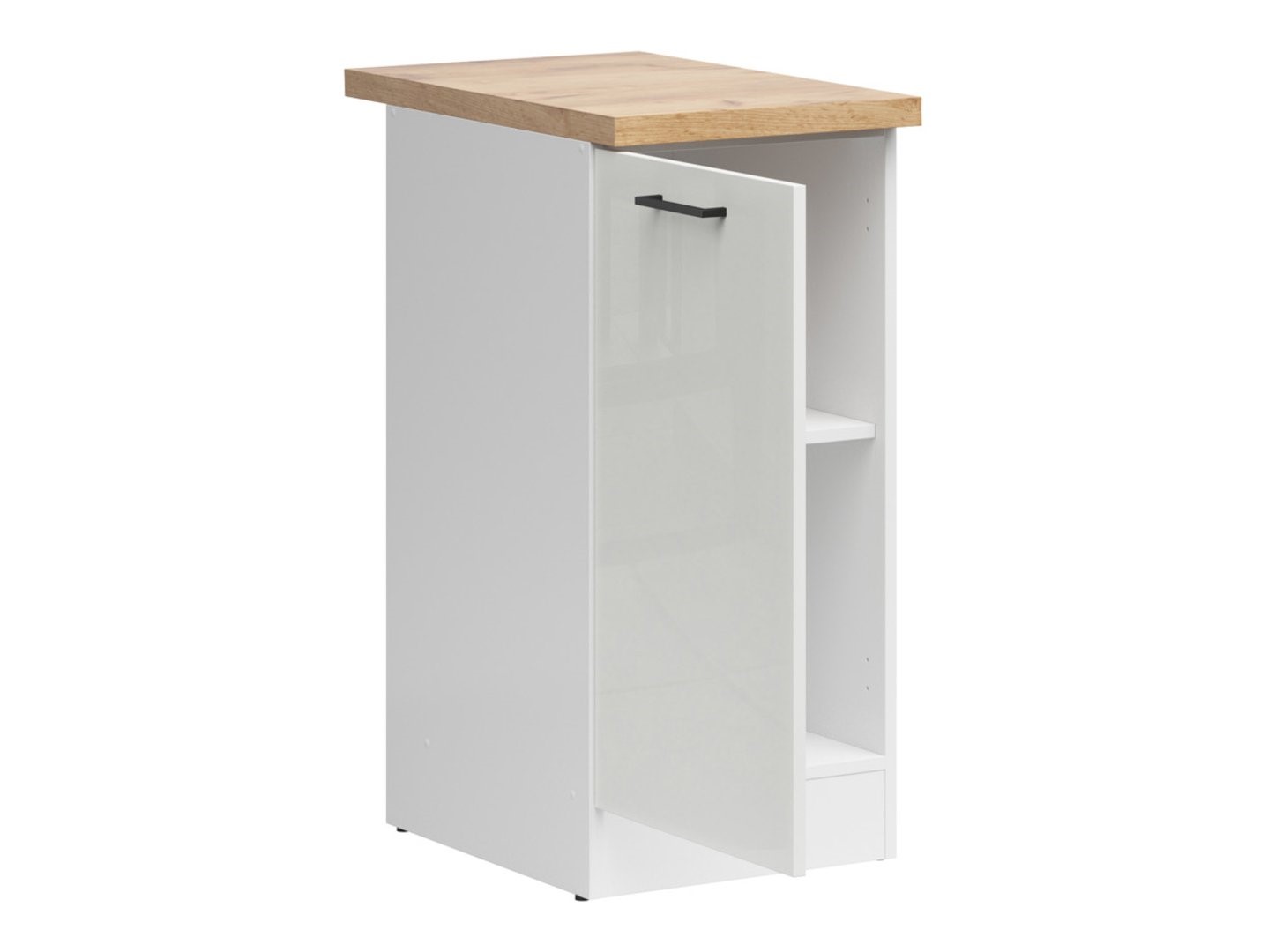 The Junona Line base cabinet with countertop is perfect for those who desire a functional kitchen. The base cabinet features a practical shelf that divides the interior into two sections, allowing for easy organization of kitchen accessories according to the user’s needs. Its optimal dimensions of 40×86 cm make it a perfect fit even in small kitchens, helping to efficiently utilize the available space next to the oven, sink, and waste bin.