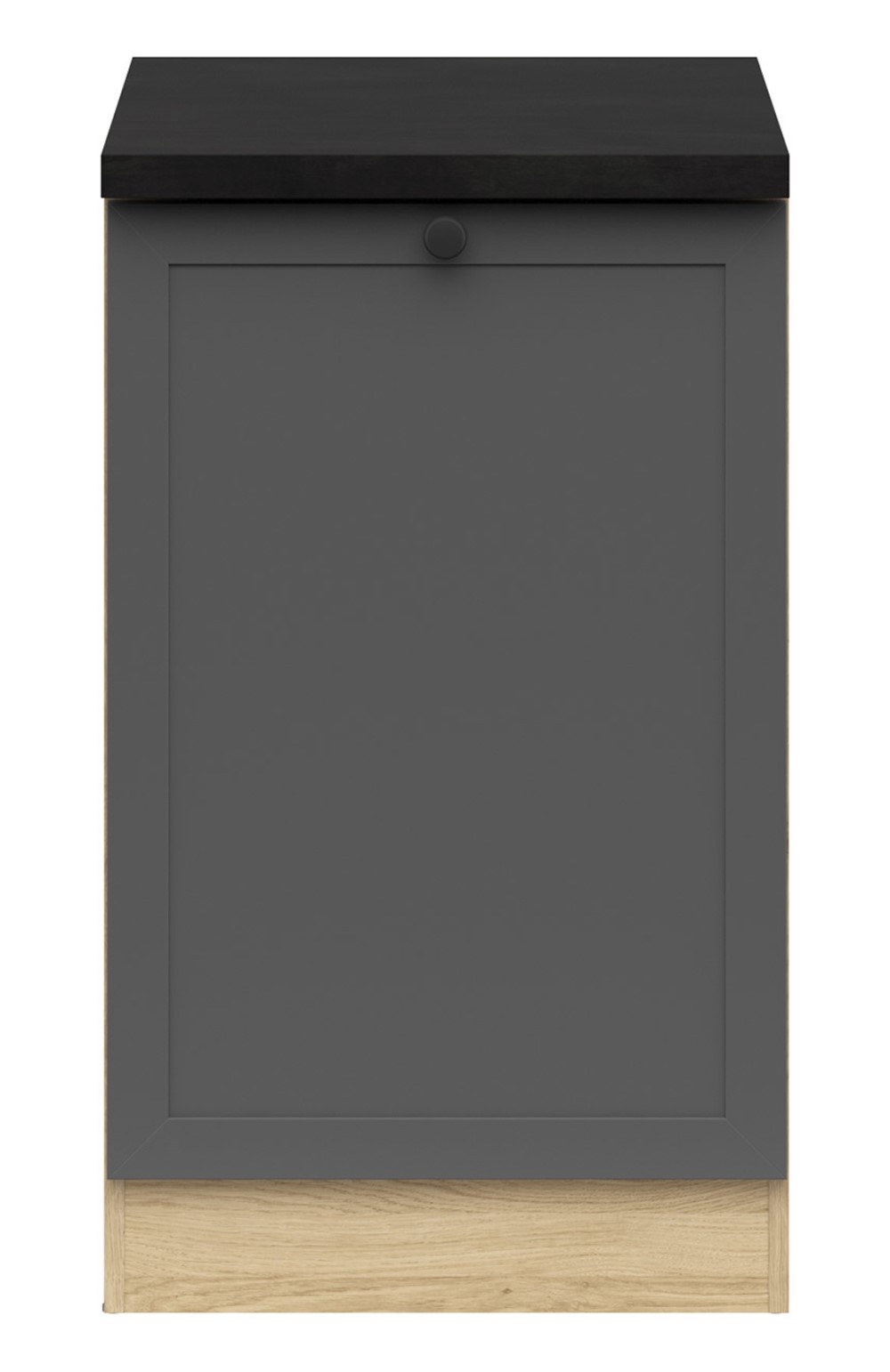The built-in cabinet with countertop occupies a space of 50×60 cm and opens to the left. The cabinet features a minimalist design, with a Bernstein oak body and graphite fronts, complemented by a stylish frame. The contrasting black and gold metallic slate countertop adds elegance. Furthermore, the cabinet features a timeless knob handle that not only facilitates opening but also adds character. Other Junona Line collection elements and accessories are available at emkameble.pl. Modular kitchen furniture is a solution not only for small but also for larger kitchens. Combine the base cabinet with other elements from the Junona Line collection and create a set tailored to your needs.