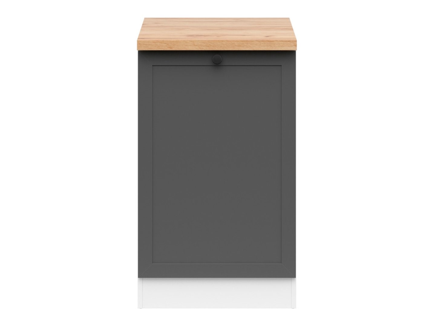 The built-in cabinet with countertop occupies a space of 50×60 cm and opens to the right. The cabinet features a minimalist design, with a white body and graphite fronts, complemented by a stylish frame. The contrasting golden craft oak countertop adds elegance. Furthermore, the cabinet features a timeless knob handle that not only facilitates opening but also adds character. Other Junona Line collection elements and accessories are available at emkameble.pl. Modular kitchen furniture is a solution not only for small but also for larger kitchens. Combine the base cabinet with other elements from the Junona Line collection and create a set tailored to your needs.