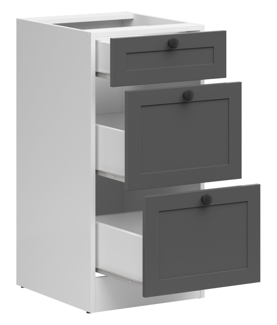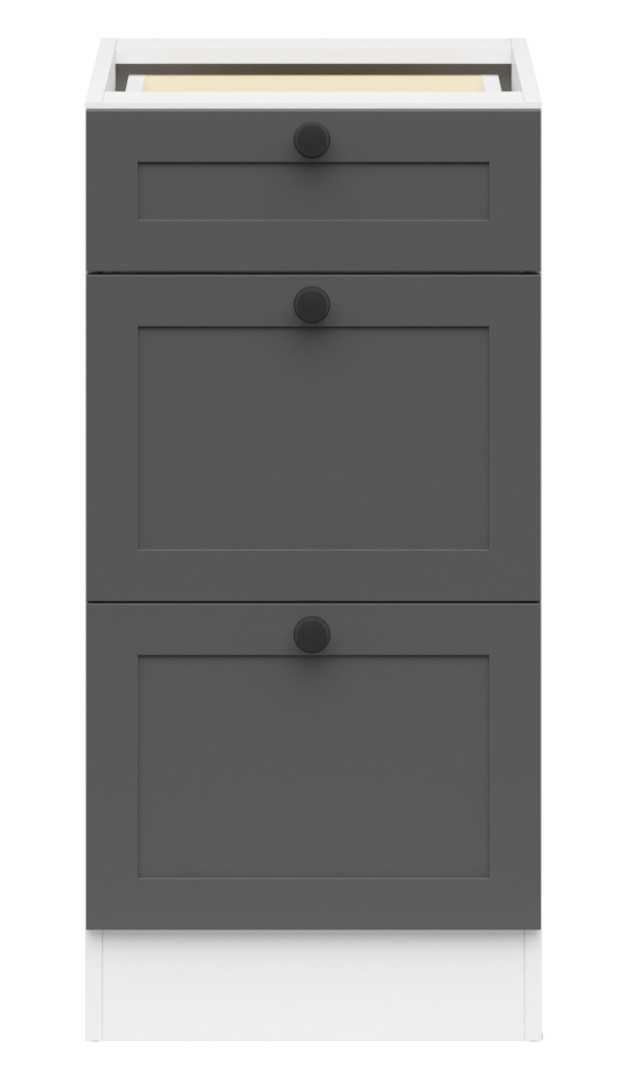 Product code K24-D3S/40/82_BBL-BI/GF Symbol ZM EAN Width 40 cm Depth 47 cm Height 82.5 cm Collection Junona Line Colour white/graphite Graphite shade Style classic Body laminate Front foil Top without top Number of doors without doors Number of drawers 3-drawers Handle with handles Manufacturer Black Red White Type of furniture Kitchen cabinets VAT 23% EAN 5906123540643