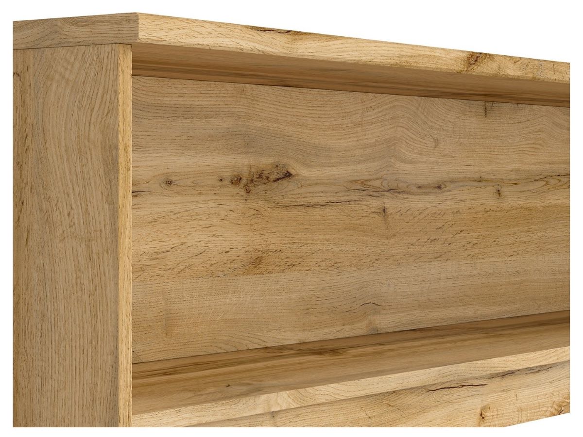 Nuis Wall-Hung Cabinet – A Stylish Bookcase for Your Wall. If you dream of a functional and stylish decorative element for your wall, the Nuis wall-hung cabinet will meet your expectations. Its simple and classic design, combined with the fashionable Wotan oak color, adds character to your interior, perfectly complementing rustic, industrial, or Scandinavian styles. The Nuis wall-hung cabinet features a box-shaped design, giving it a classic look. At the same time, the fashionable Wotan oak color adds a modern touch and makes it a perfect complement to various interior designs. Measuring 135 x 29 x 37.5 cm, this cabinet is perfect as a handy bookcase. You can display your favorite books, ceramics, photos, or even sports trophies. It’s not only a practical element but also a decorative wall piece. The Nuis wall-hung cabinet will fit perfectly into various areas of your home. It creates a unique arrangement above a bed, a sofa in the living room, or a desk in a teenager’s room. Its simple design opens up many possibilities for creative combinations with other furniture, creating a cohesive composition. If you’re looking for an elegant addition to your living room, bedroom, or study, the Nuis wall cabinet is the perfect choice. Open and spacious, it allows you to fully utilize the wall’s potential, becoming not only a functional but also an aesthetically pleasing element of your interior.