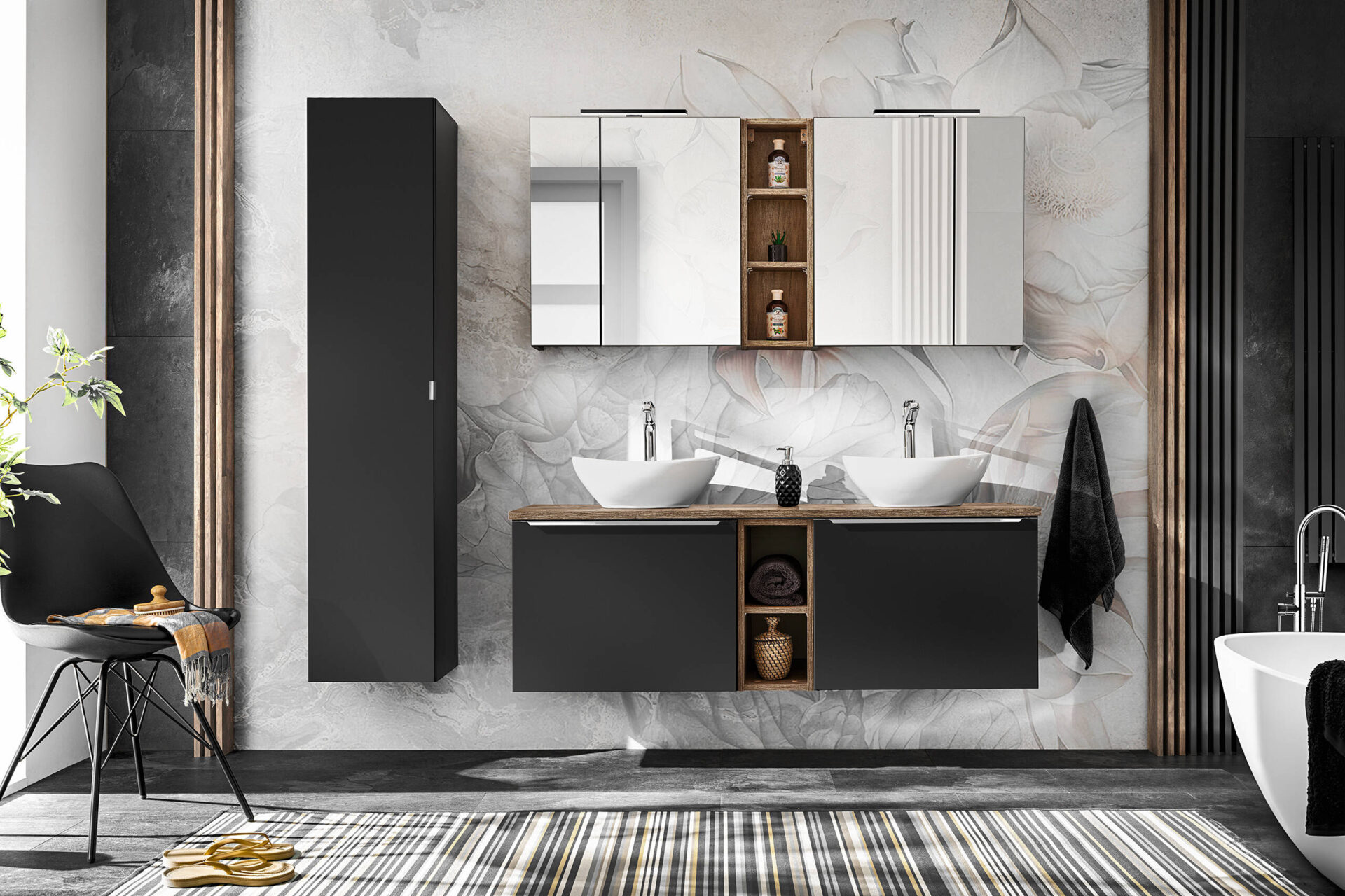 Veidrodinė spintelė, 60 cm, Santa Fe, juoda