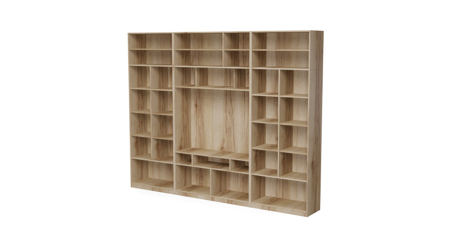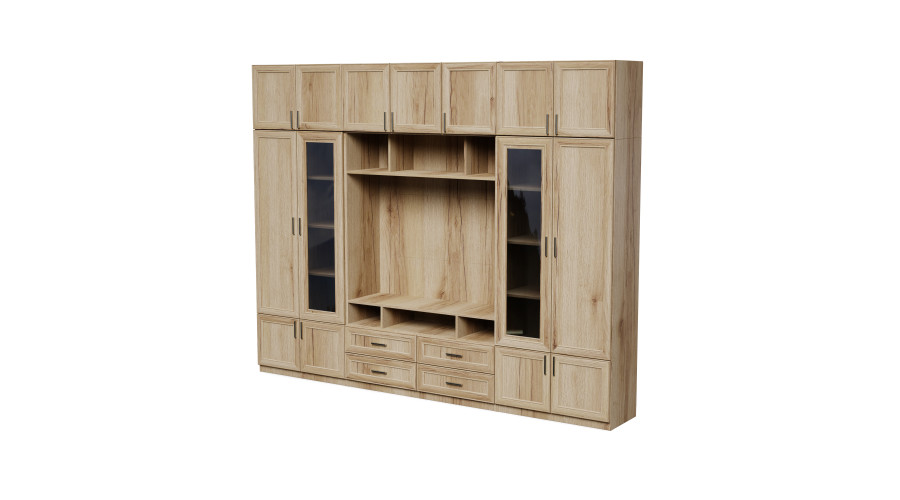 TV spintelė su stiklinėmis vitrinomis 303 × 240 cm, Dąb Grand Naturalny – VERO