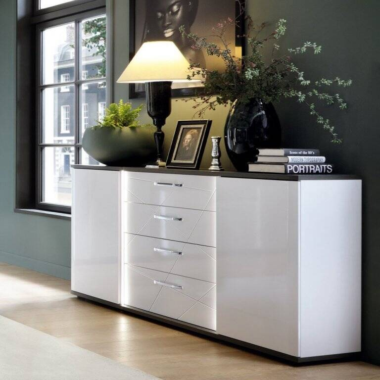 Be the first to review “Venezia VENK01 – Komoda 2D4S balta/Vicenza ąžuolo juoda”