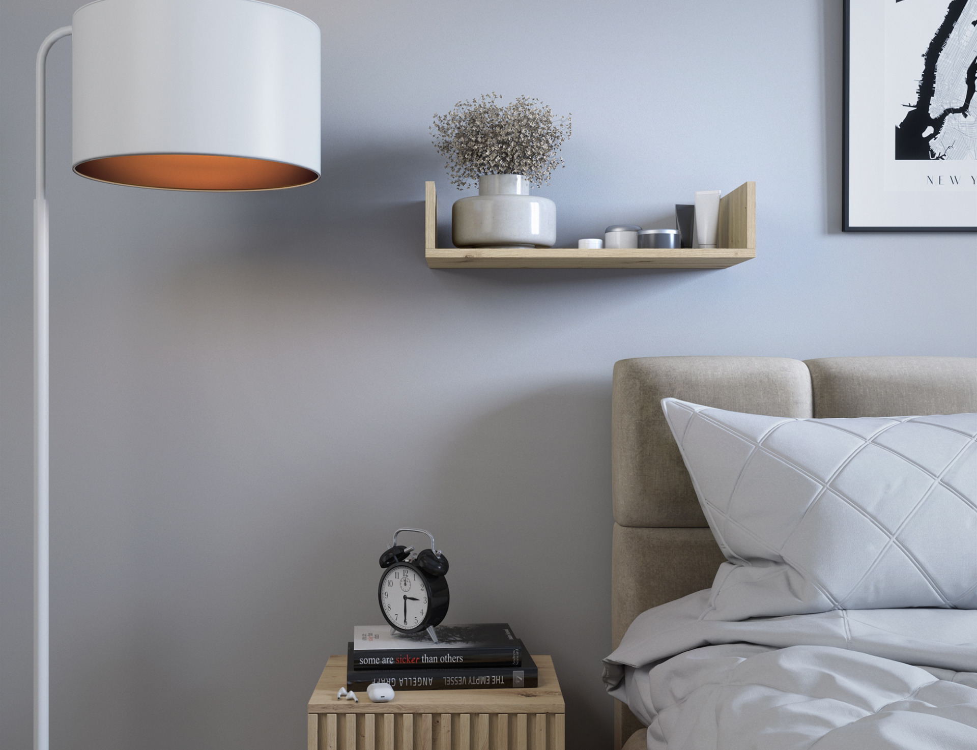 The Vissta hanging shelf is the perfect solution for those who appreciate modern, minimalist design, which blends perfectly with Scandinavian-style interiors. Vissta is a versatile decorative element that suits living rooms, bedrooms, and offices alike. Its simple yet modern form perfectly showcases your favorite decorations, books, or photographs. Thanks to its minimalist design, the shelf doesn’t overwhelm the interior but subtly complements it, giving the space an elegant look. The shelf is constructed of high-quality 16 mm laminated chipboard, ensuring durability and resistance to everyday use. The shelf front is finished with PVC edging in a color that matches the décor, giving it a uniform and aesthetically pleasing appearance.
